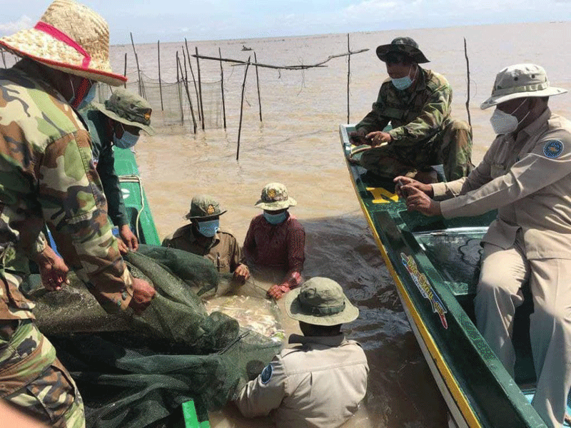 នៅក្នុងកិច្ចប្រតិបត្តការបង្ក្រាបផបទល្មើសនរសាទខាងលើនេះ ដោយបានធ្វើការរុះរើបំផ្លាញចោលនូវឧបករណ៍ចាប់ត្រី(របាំង)ដែលជាវត្ថុតាងអស់ជាច្រើន ។ សេចក្តីរាយការណ៍ពីកម្លាំងសមត្ថកិច្ចចុះផ្ទាល់បានឲ្យដឹងថា នៅតែបន្តចុះបង្ក្រាបបទល្មើសបន្តបន្ទប់ជាក់ស្តែងធ្វើការរុះរើនិងបំផ្លាញចោលឧបករណ៍ស្ទាក់ចាប់ត្រីរបាំងសាច់អួននិងរបាំងស្បៃមុង ។សេចក្តីរាយការណ៍ពីសមត្ថកិច្ចចម្រុះបានអោយដឹងថាក្រុមទី១បានចុះត្រួតពិនិត្យ និងបង្រ្កាបត្រង់ចំណុចកំពង់គុជនិងជ្រោយក្សុំ ដែលស្ថិតនៅភូមិចារុះ ឃុំរាំងទិល ស្រុកកណ្ដៀង ខេត្តពោធិសាត់ជា លទ្ធផលៈ រុះរើបំផ្លាញចោលនូវឧបករណ៍ចាប់ត្រី(របាំងសាចើអួនចំនួន៤ខ្សែប្រវែង៤៥០ម៉ែត្រក្បាលបរ៤គ្រឿងនិងរបាំងស្បៃមុង១៩ខ្សែប្រវែង៩៥០ម៉ែត្រលូកង២៥មាត់បង្គោលចម្រឹង៣០០ដើម និងចាក់លែងត្រីចម្រុះចូលទឹកបឹងទន្លេសាបវិញ។ សេចក្តីរាយការណ៍ខាងលើដដែលបានអោយដឹងទៀតថា ដោយឡែកៈ ក្រុមទី-២ បានចុះត្រួតពិនិត្យ និងបង្រ្កាបបទល្មើសនៅចំណុចកន្លុងសង្ក្រងស្ថិតនៅឃុំកំពង់គោ ស្រុកក្រគរនិងចំណុចព្រែកសាឡិតស្ថិតនៅភូមិ.ឃុំ.រាំងទិលស្រុកកណ្តៀងខេត្តពោធិសាត់ដែល ជាលទ្ធផលរុះរើបំផ្លាញចោលនូវឧបករណ៍ចាប់ត្រីដែលជាវត្ថុតាង របាំងសាច់អួន៨ខ្សែរប្រវែង១៨០០ម៉ែត្រក្បាលបរ៤គ្រឿងនិងរបាំងស្បៃមុង១៧ខ្សែប្រវែងចំនួន១៤០០ម៉ែត្រ លូកងចាប់ត្រី៣២មាត់បង្គោលចម្រឹង៨៥០ដើមនិងបានចាក់លែងត្រីចម្រុះចូលក្នុងទន្លេវិញផងដែរ ។