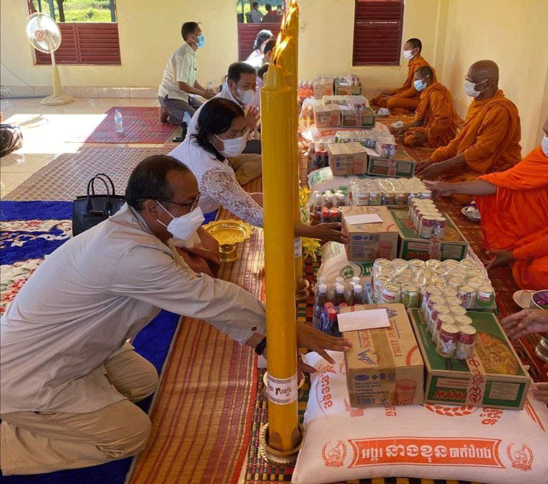 ឯកឧត្តម ស៊ុន សុវណ្ណារិទ្ធិ និង លោកជំទាវ កែ ច័ន្ទមុនីបានអំពាវនាវដល់ព្រះសង្ឃ អាជ្ញាធរដែនដី បងប្អូនប្រជាពលរដ្ឋ ពុទ្ធិបរិស័ទ្ធ ត្រូវបន្តចូលរួមធ្វើអនាម័យជាប្រចាំ ដោយអនុវត្តតាមការណែនាំរបស់ក្រសួងសុខាភិបាលនិងអនុសាសន៍របស់សម្តេចប្រមុខរាជរដ្ឋាភិបាលគឺ៣ការពារនិង៣កុំអោយបានត្រឹមត្រូវ និងត្រូវអនុវត្តអោយបានម៉ឺងម៉ាត់នូវវិធានការបង្ការ ការពារ និងទប់ស្កាត់ ការរីករាលដាលនៃជំងឺCOVID-១៩ នៅក្នុងមូលដ្ឋានរបស់ខ្លួន និង ត្រូវបន្តចូលរួម រិតបន្តឹងបញ្ហាសន្តិសុខ សុវត្តិភាព សណ្ដាប់ធ្នាប់សាធារណៈ កែលម្អសោភ័ណ្ឌភាពទីអារាម ភូមិស្ថានគ្មានល្បែងស៊ីសង ក្រុមក្មេងទំនើង ខិតខំដោះស្រាយបញ្ហាគ្រឿងញៀន គ្រោះថ្នាក់ចរាចរណ៍ បទល្មើសគ្រប់រូបភាព ដើម្បឲ្យភូមិ ឃុំមាន សុវត្ថិភាព ។