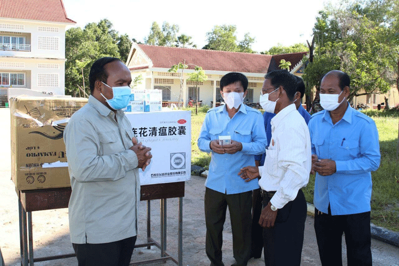 ក្នុងឱកាសនោះឯកឧត្តមបានប្រគល់ជូនសម្ភារៈរបស់ឯកឧត្តមអភិបាលខេត្ត មានម៉ាស់ ចំនួន០២កេស ស្មើ៥០០០ម៉ាស់ ជែល៤០០ដបតូចនិងថ្នាំចិនសែចំនួន១២០ប្រអប់សម្រាប់ទុកចែកដល់បងប្អូនដែលកំពុងសម្រាកព្យាបាលជំងឺផងដែរ ៕ដោយ សុក្ខារិន