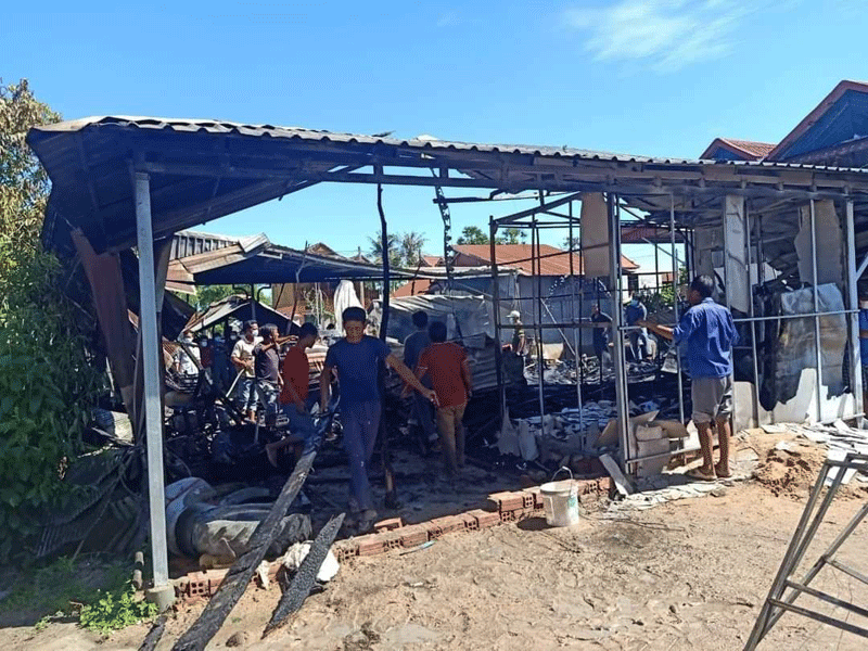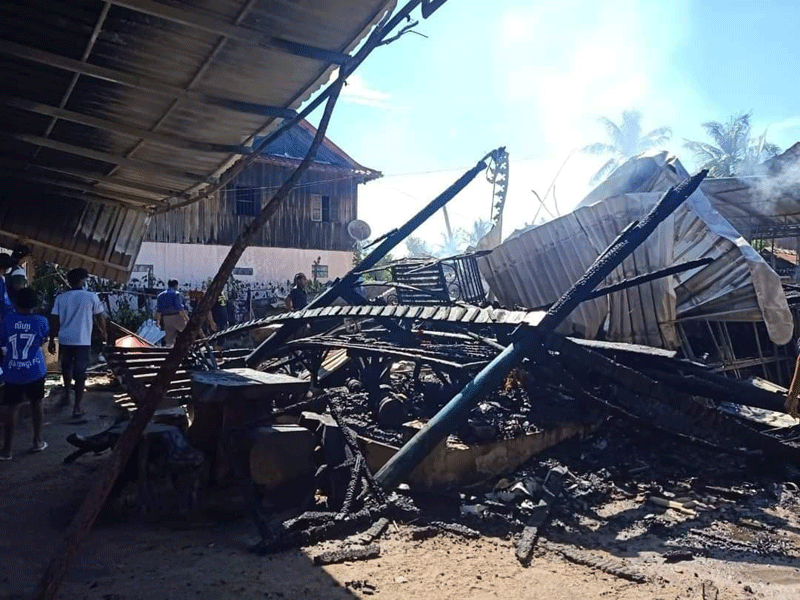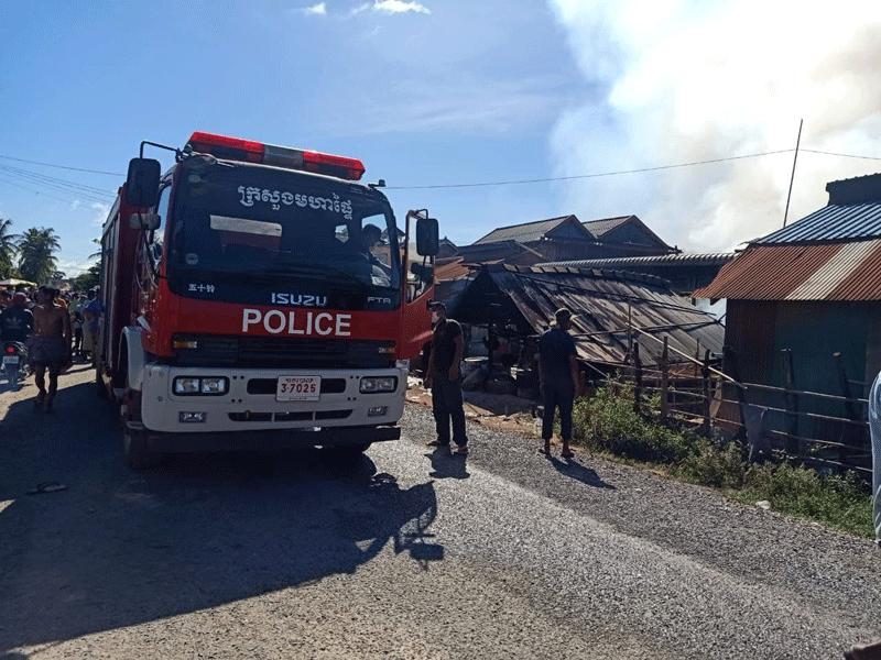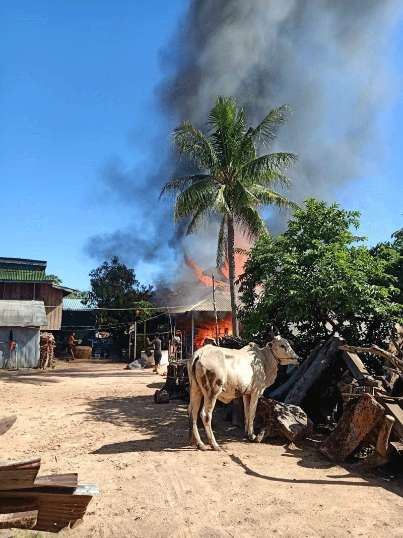 ខេត្តកំពង់ឆ្នាំង :ផ្ទះឈើ១ខ្នងត្រូវអគ្គីភ័យឆាបឆេះខ្ទេចអស់គ្មានសល់គ្រាដែលម្ចាស់ផ្ទះមិននៅ ដោយសារឆ្លងចរន្តអគ្គិសនី ។