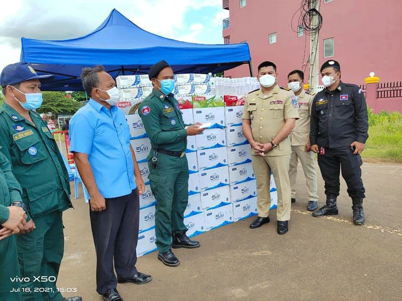ព្រះវិហារៈ លោក ឧ ត្ត ម សេនីយ៍ ទោ សួស សុខ ដា រ៉ា ស្នងការ នគរបាល ខេត្តព្រះវិហារ បាន ចាត់តាំង មន្ត្រីក្រោមឱវាទ នាំយក ថវិកា សម្ភារ សុខាភិបាល រួមទាំង គ្រឿង បរិភោគ មួយចំនួន ទៅ ឧបត្ថម្ភ ដល់ អាជ្ញាធរ មូលដ្ឋាន និង កងកម្លាំង ទាំង ៣ ដែល កំពុង ឈរជើង នៅ តំបន់ បិទ ខ្ទប់ ៦ គោលដៅ ដើម្បី ការពារ ច្រកចេញចូលភូមិ នៅការឆ្លង រីក រាលដាល ជំងឺ កូ វីដ -១៩ នៅក្នុង ក្រុង ព្រះវិហារ នារសៀល ថ្ងៃទី ១៨ កក្កដា ឆ្នាំ ២០២១ ។
