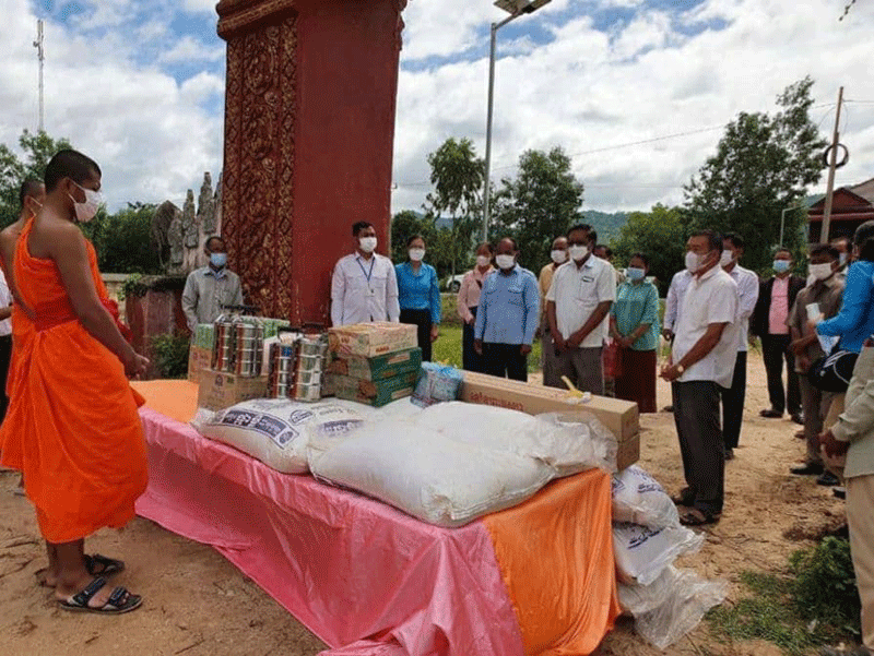 ព្រះវិហារ៖ ប្រធានក្រុមការងារថ្នាក់ខេត្តចុះជួយមូលដ្ឋានស្រុកសង្គមថ្មី លោក សំ លាងទ្រី បាននាំយក ទេយ្យទានប្រគេនព្រះសង្ឃគង់ ជាប់ចត្តាឡីស១៤ថ្ងៃ នៅវត្តតេជះរង្សី ហៅវត្តបឹង ភូមិប្រធាត ឃុំចំរើន ស្រុកសង្គមថ្មីខេត្តព្រះវិហារ ដើម្បីជួយរំលែកការលំបាកជាមួយព្រះសង្ឃ គង់ចាំព្រះវស្សា ខណៈដែលជម្ងឺ កូវីដ–១៩ បាននិងកំពុងយាយីរីករាលដាលទូទាំងរាជធានី ខេត្តក្រុងទៅហើយនោះ។