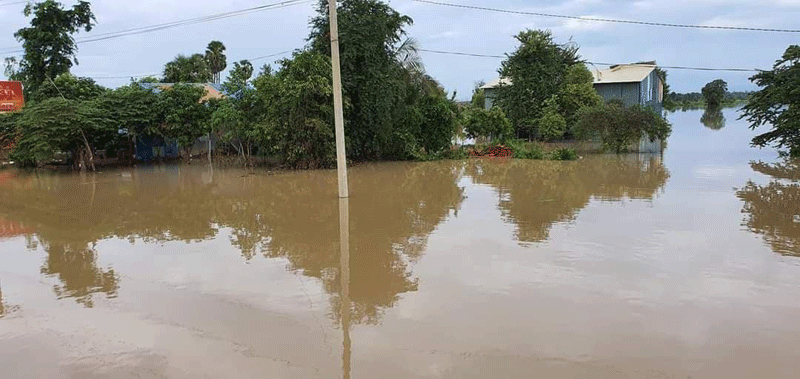 ខេត្តកំពង់ឆ្នាំង :ដោយសារតែស្ថានភាពទឹកភ្លៀងនៅតែបន្តធ្លាក់ជាប់ៗគ្នានៅផ្នែកខាងលើ បានធ្វើឱ្យកំណាត់ផ្លូវជាតិលេខ 5 ត្រង់ចន្លោះគីឡូម៉ែត្រលេខ 49 ចំណុចស្ពានជ្រលងម៉ៅ ស្ថិតក្នុងភូមិតាកុល ឃុំពានី ស្រុកកំពង់ត្រឡាច កើតមានជំនន់បណ្តាលអោយលិចលង់ជាខ្លាំងនិងបានធ្វើឱ្យស្រូវស្រែរបស់បងប្អូន ប្រជាពលរដ្ឋមួយចំនួនផ្នែកខាងក្រោមនិងខាងលើផ្លូវត្រូវបានរងការលិចខូចខាត ។