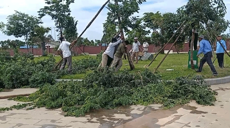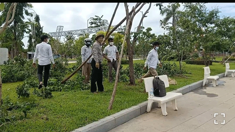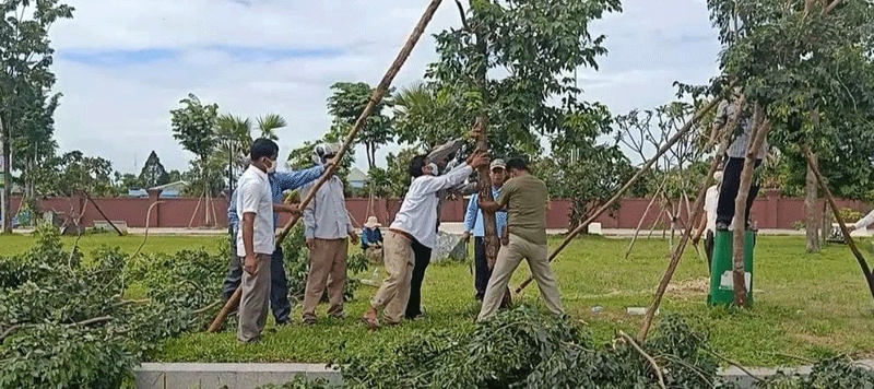 ក្នុងនោះក៍មានដើមឈើធំៗ ចំនួន២ដើមទៀតដែលមិនអាចលើកដោយដៃបាន ត្រូវរង់ចាំគ្រឿងចក្រមកលើកដាក់បញ្ឈរ ហើយជីកដាំអោយជ្រៅឡើងវិញ ។