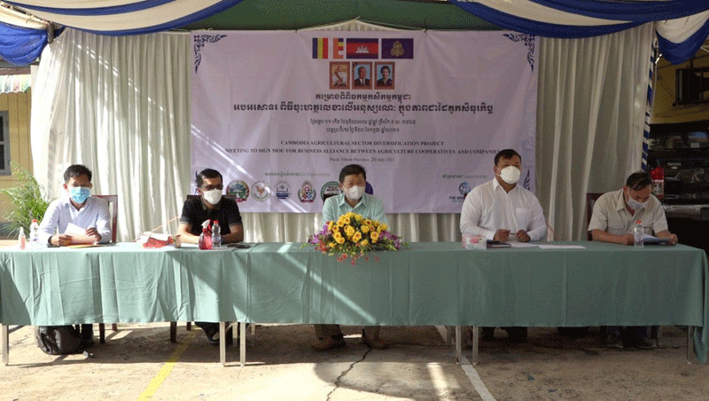 បើទោះបីឋិតក្នុងបរិបទនៃការរាតត្បាតនៃជំងឺកូវីដ-១៩ ដែលបានបង្ករផលប៉ះពាល់ធ្ងន់ធ្ងរដល់សកម្មភាពផលិតកម្មរបស់កសិករ និងសុខមាលភាពសាធារណៈយ៉ាងណាក្ដី ក៏ស្ថាប័នជំនាញ នៃមន្ទីរកសិកម្មខេត្តព្រះវិហារ បានខិតខំគៀងគរប្រមូលកសិករក្នុងខេត្ត ដែលប្រកបរបរក្នុងផលិតកម្មដំណាំកសិកម្មប្រឹងប្រែងផលិតនូវកសិផលនានា បំពេញតម្រូវការទីផ្សារ មិនតែប៉ុណ្ណោះមន្ទីរកសិកម្មក៏បានស្វះស្វែងរកនូវក្រុមហ៊ុននានាឱ្យចូលរួមចុះអនុស្សរណៈកសាងភាពជាដៃគូរ “កសិធុរកិច្ច” ក្នុងទិសដៅធានាបាននូវទីផ្សារចរាចរផលិតផល មិនឱ្យកកស្ទះដល់សកម្មភាពផលិតកម្ម ជាក់ស្ដែងដូចកម្មវិធីនាពេលនេះបង្ហាញជាសក្ខីភាពសំដៅដល់ការផលិត សម្រាប់បម្រើដល់ការនាំ ចេញទៅទីផ្សារខាងក្រៅ ធានាឱ្យសហគមន៍កសិករមានប្រភពចំណូលចរន្ដ ក្នុងការលើកកម្ពស់ជីវភាពរស់នៅ និងការបង្កើតការងារថ្មីៗសម្រាប់បំពេញតម្រូវការទីផ្សារពលកម្មផងដែរ។