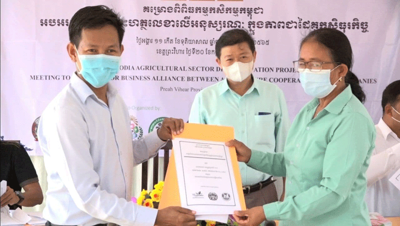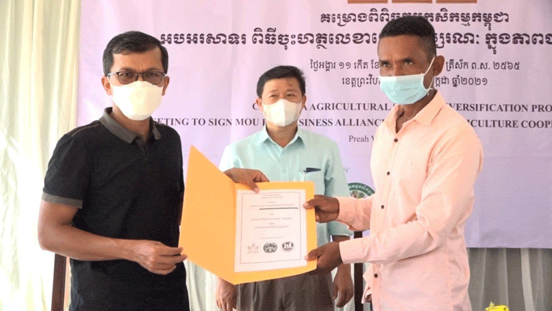 ព្រះវិហារៈ កាលពីថ្ងៃទី២០ ខែកក្កដា ឆ្នាំ២០២១ នៅបរិវេណមន្ទីរកសិកម្ម រុក្ខាប្រមាញ់ និងនេសាទ ខេត្តព្រះវិហារ មានការរៀបចំកម្មវិធីប្រជុំដើម្បីចុះហត្ថលេខា លើអនុស្សរណៈក្នុងការកសាងនូវភាពជាដៃគូរ រវាងបណ្ដាក្រុមហ៊ុនក្នុងស្រុកចំនួន៣ និងសហគមន៍កសិកម្មចំនួន១៣ ក្នុងខេត្តព្រះវិហារ ក្នុងការបញ្ជាទិញកសិផលកសិកម្ម៣មុខ រួមមានដំណាំដំឡូងមី ដំឡូងមីសរីរាង្គ និងគ្រាប់ស្វាយចន្ទី សម្រាប់នាំចេញទៅកាន់ទីផ្សារខាងក្រៅ។