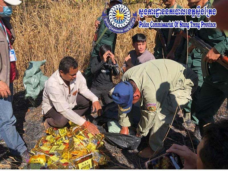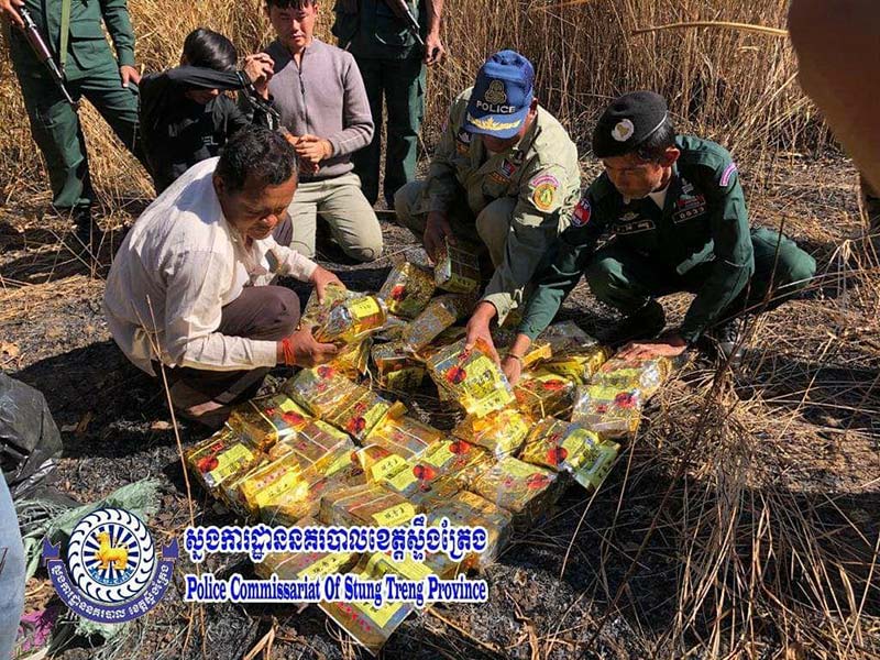 ស្ទឹងត្រែង: នៅថ្ងៃព្រហស្បតិ៍ ១កើត ខែមាឃ ឆ្នាំជូត ទោស័ក ព. ស ២៥៦៤ ត្រូវនឹងថ្ងៃទី ១៤ ខែមករា ឆ្នាំ២០២១ មន្រ្តីអនុវត្តច្បាប់ ការិយាល័យប្រឆាំងបទល្មើសគ្រឿងញៀន នៃស្នងការដ្ឋាននគរបាលខេត្តស្ទឹងត្រែង សហការជាមួយមន្រ្តីអនុវត្តច្បាប់ នៃមន្ទីរប្រឆាំងគ្រឿងញៀនបានបង្ក្រាប ករណីជួញដូរឆ្លងដែនដោយខុសច្បាប់នូវសារធាតុញៀន ស្ថិតនៅ តាមខ្សែបន្ទាត់ព្រំដែនកម្ពុជា-ឡាវ ក្នុងភូមិសាស្រ្ត ឃុំអូរស្វាយ ស្រុកបុរីអូរស្វាយសែនជ័យ ខេត្តស្ទឹងត្រែង ឃាត់ខ្លួនជនសង្ស័យចំនួន ០២នាក់ ជាជនជាតិ ឡាវ ។