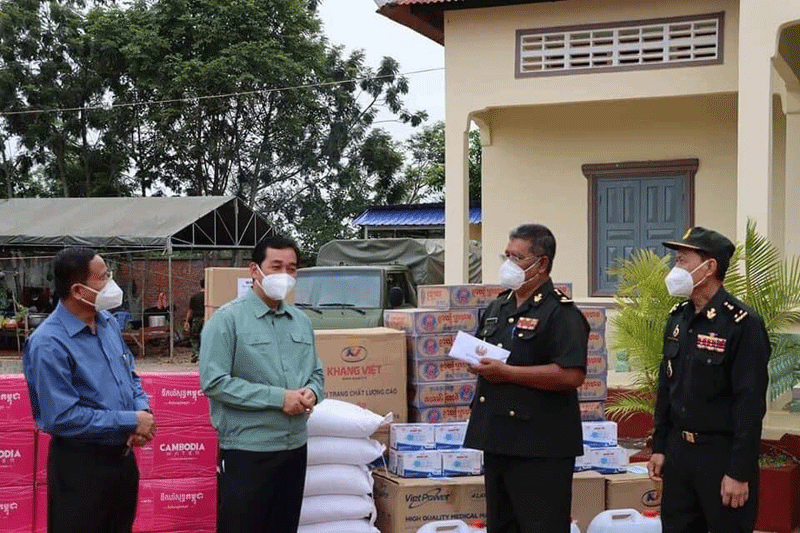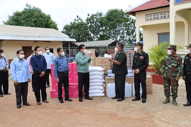 កំពង់ចាម : ឯកឧត្ដម អ៊ុន ចាន់ដា អភិបាលខេត្ត កំពង់ចាម និងជាប្រធានគណៈកម្មការខេត្ត ប្រយុទ្ធប្រឆាំងនឹងជម្ងឺកូវីដ-១៩ នាព្រឹក ថ្ងៃទី ២៣ ខែកក្កដា ឆ្នាំ ២០២ នេះ បាននាំយកអំណោយ របស់រដ្ឋបាលខេត្ត ផ្ដល់ជូនក្រុមគ្រូពេទ្យ កងយោធពលខេមរភូមិន្ទ នៃយោធភូមិភាគ២ និងក្រុមគ្រូពេទ្យកងវិស្វកម្មក្រសួងការពារជាតិ ដែលកំពុងបំពេញបេសកកម្ម ចាក់វ៉ាក់សាំងបង្ការជម្ងឺកូវីដ-១៩ ជូនដល់ប្រជាពលរដ្ឋ នៅក្នុងស្រុកជើងព្រៃ និងស្រុកបាធាយ ។