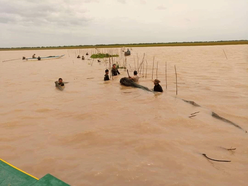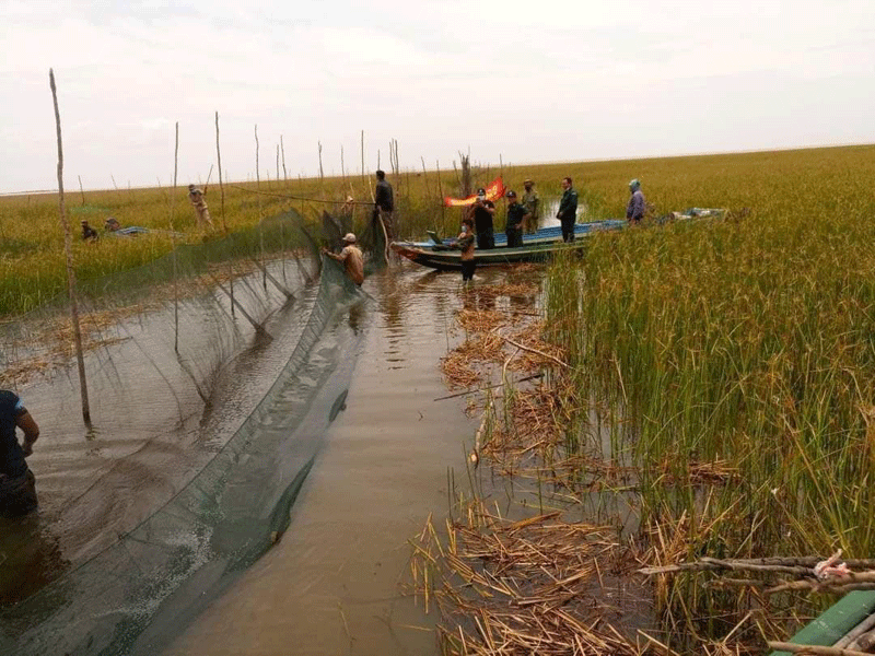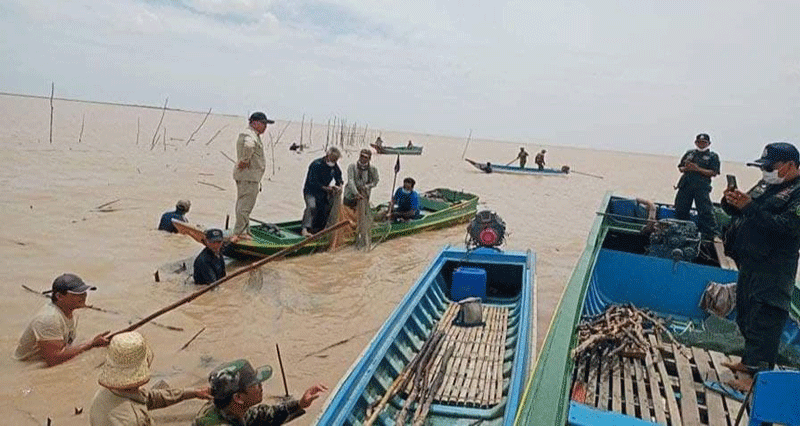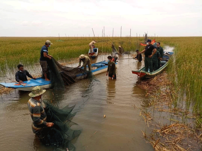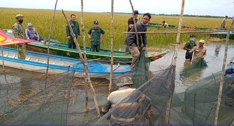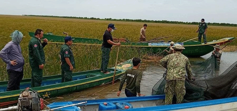 និង ឧបករណ៍បទល្មើសនេសាទដែលសមត្ថកិច្ចដកហូតបានរួមមាន៖ របាំងស្បៃមុង និងរបាំងសាច់អួនក្រឡាល្អិតចំនួន ០៩ខ្សែ ប្រវែង ៦៣០០ម៉ែត្រ, ក្បាលបរចំនួន ២០គ្រឿង, បង្គោលចំរ៉ឹងចំនួន ២៤០០ដើម និងបានចាក់លែងត្រីចម្រុះចូលទៅក្នុងទន្លេវិញ រីឯឧបករណ៍បទល្មើសនេសាទខាងលើត្រូវបានបំផ្លាញចោលនៅហ្នឹងកន្លែង។