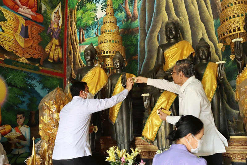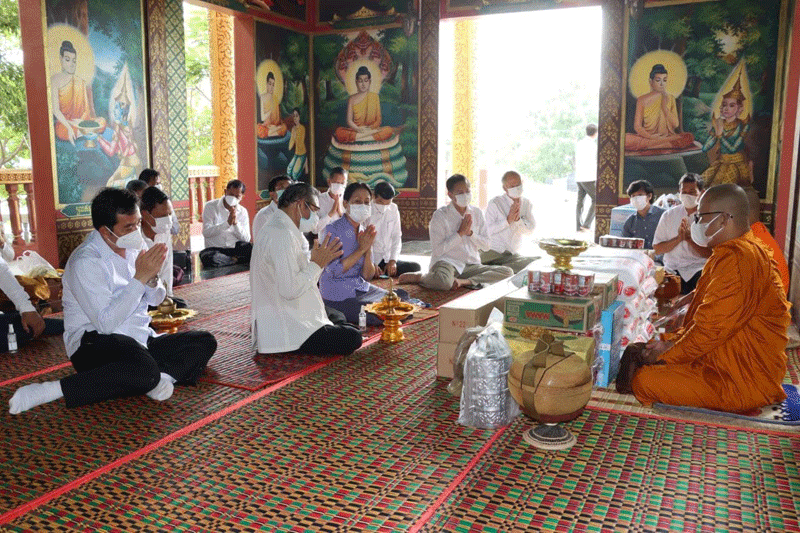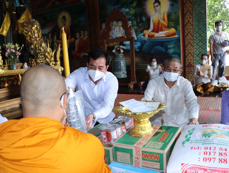 កំពង់ចាម : ឯកឧត្តម ឧបនាយករដ្ឋមន្ត្រី យឹម ឆៃលី ប្រធានក្រុមប្រឹក្សាស្ដារអភិវឌ្ឍន៍ វិស័យកសិកម្ម និងជនបទ និងជាប្រធានក្រុមការងាររាជរដ្ឋាភិបាលចុះមូលដ្ឋានខេត្តកំពង់ចាម និងឯកឧត្តម អ៊ុន ចាន់ដា អភិបាលខេត្តកំពង់ចាម រួមជាមួយថ្នាក់ដឹកនាំខេត្តជាច្រើនទៀត នាព្រឹកថ្ងៃទី២៤ ខែកក្កដា ឆ្នាំ២០២១ នេះ បាន អញ្ជើញ ប្រគេន ទៀន ព្រះវស្សា និង ទេយ្យទាន ដល់ព្រះសង្ឃចំនួន៤វត្ត ដែលពិធីនេះ ត្រូវ បាន រៀបចំ ឡេីងនៅសួនក្រញូង សង្កាត់សំបូរមាស ក្រុងកំពង់ចាម ។