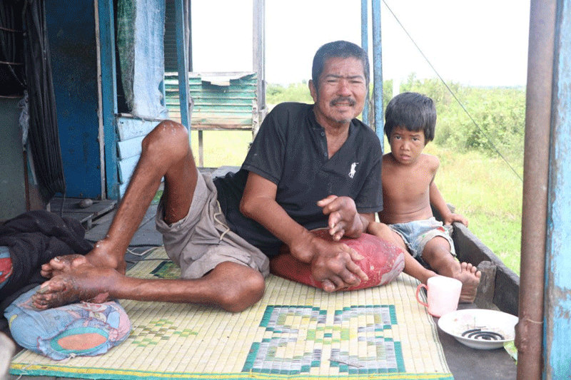 ខេត្តកំពង់ឆ្នាំង :បុរសជាអតីតយុទ្ធជនពិការម្នាក់ បានរបួសពិការដោយសារសង្គ្រាម លើសមរភូមិនិងមានជំងឺប្រចាំកាយ៦ឆ្នាំហើយដើរមិនរួច រស់នៅជាមួយកូនស្រីតូចៗ២នាក់ ក្នុងស្រុកបរិបូណ៌ ខេត្តកំពង់ ឆ្នាំង ។