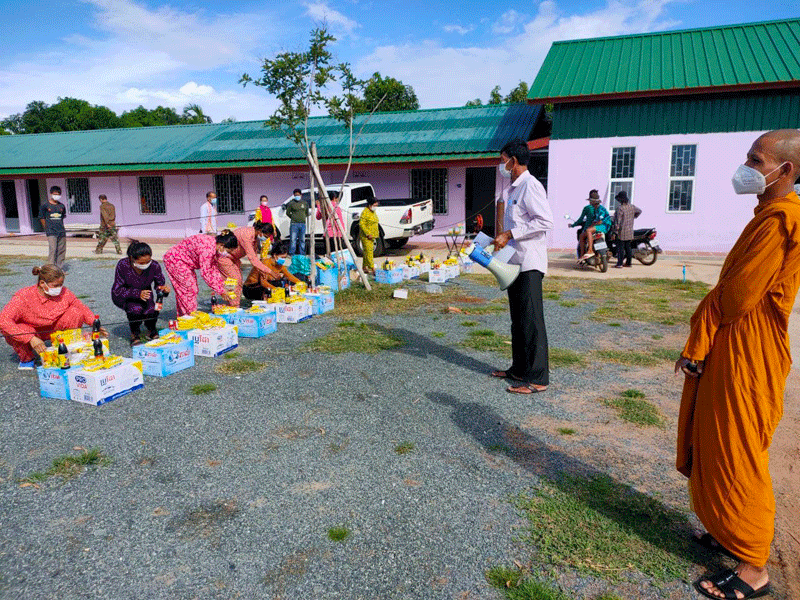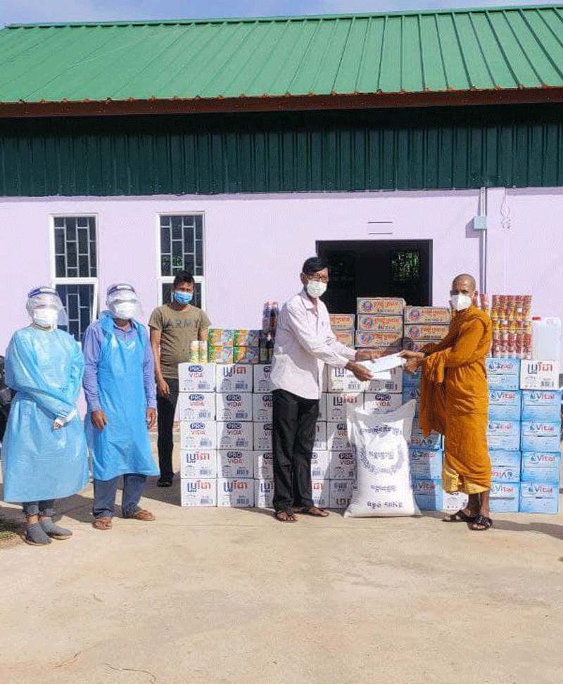 ខេត្តកំពង់ឆ្នាំង:នៅល្ងាចថ្ងៃទី២៦កក្កដា២០២១ព្រះគ្រូយស់បញ្ញសញ្ញាណ.សុនចាន់វិរះ.ព្រះចៅអធិការវត្តចន្ធប្បជោត្តនារាមហៅ វត្តតាសិទ្ធ នៅភូមិបាតឡាង ឃុំក្រាំងលាវ ស្រុករលាប្អៀរខេត្តកំពង់ឆ្នាំងបាននាំយកអំណោយដែលគ្រឿងសម្ភារះហូបមកប្រគល់ជូនមណ្ឌល់ព្យាបាលជម្ងឺកូវិដ១៩កម្រិតស្រាលក្នុងស្រុកទឹកផុស ។ព្រះគ្រួចៅអធិការព្រះនាមយស់បញ្ញាញ្ញាណ សុនចាន់វិរះ ព្រះអង្គបានមានសង្ឃដីកាថាអំណោយដែលបាននាំយកមកប្រគល់ជូននៅថ្ងៃនេះត្បិតតែមានតិចតួចក៏ពិតមែនតែជាសណ្តានចិត្តសទ្ធាបរិច្ចាកនិងជួយសម្រាលការលំបាកនៅក្នុងមណ្ឌលព្យាបាលកូវីដ 19 កម្រិតស្រាលក្នុងស្រុកទឹកផុសបានមួយគ្រាផងដែរ ។ព្រះគ្រូចៅអធិការវត្តចន្ទប្បជោត្តនារាមហៅវត្តតាសុទ្ទព្រះអង្គបានធ្វើការផ្តាំផ្ញើដល់បងប្អូនប្រជាពលរដ្ឋទាំងអស់ដែលកំពុងតែធ្វើចិត្តាឡីស័កនៅមណ្ឌលព្យាបាលកំរិតស្រាលនៃស្រុកទឹកផុសត្រូវធ្វើយ៉ាងណាអនុវត្តឲ្យបានតាមការណែនាំរបស់ប្រមុខរាជរដ្ឋាភិបាលក៏ដូចជាក្រសួងសុខាភិបាល(៣ការពារនិង៣កុំ) ។អំណោយដែលបាននាំយកមកប្រគល់ជូនដល់មណ្ឌលព្យាបាលកូវីដ19 កម្រិតស្រាលនៃស្រុកទឹកផុសមានទឹកសុទ្ធ 50 កេះ.ត្រីខកំប៉ុង១០យួរ . ម៉ាស់១០ប្រអប់.អង្ក៥០គីឡូក្រាម.មីខ្លាឃ្មុំ១០កេះ.អាកុល១០លិត្រទឹកដោះគោខាប់១០កំប៉ុងផងដែរ ។អនុប្រធានគណៈកម្មការគ្រប់គ្រងនិងសម្របសម្រួលមណ្ឌលព្យាបាលកូវីដ19 កម្រិតស្រាលនៅស្រុកទឹកផុសតំណាងលោកអភិបាលស្រុកទឹកផុសលោក ឡុចវណ្ណមីន បានថ្លែងអំណរគុណយ៉ាងជ្រាលជ្រៅចំពោះព្រះចៅអធិការវត្តចន្ទប្បត្តនារាម.ហៅ.វត្តតាសុទ្ធដែលបាននាំយកអំណោយមកប្រគល់ជូនមណ្ឌល់ព្យាបាលកូវិដ១៩កម្រិតស្រាលស្រុកទឹកផុសដែលព្រះអង្គបានរួមចំណែកក្នុងគ្រាដែលជម្ងឺកូវិដនៅមិនទាន់បានស្រាកស្រាននោះឡើយ ។សូមបញ្ជាក់ផងដែរថានៅថ្ងៃទី 26 កក្កដា 2021 នេះស្រុកទឹកផុសមិនមានរកឃើញអ្នកវិជ្ជមានកូវីដ19 ទៀតទៅឡើយហើយចំនួនអ្នកដែលចូលមកសម្រាកព្យាបាលនៅមណ្ឌលសរុបមាន 64នាក់ស្រី 41 នាក់ ៕ សុក្ខារិន
