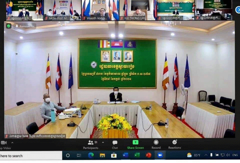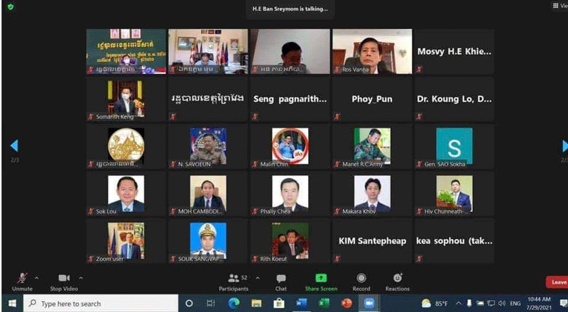 ខេត្តស្វាយរៀង៖នាព្រឹកថ្ងៃព្រហស្បតិ៍ ៥រោច ខែទុតិយាសាឍ ឆ្នាំឆ្លូវ ត្រីស័ក ព.ស២៥៦៥ ត្រូវនឹងថ្ងៃទី ២៩ ខែមិថុនា ឆ្នាំ២០២១ នេះ ឯកឧត្តម ម៉ែន វិបុល អភិបាលខេត្តស្វាយរៀង និងជាប្រធានគណៈកម្មការប្រយុទ្ធប្រឆាំង នឹងជំងឺកូវីដ១៩ខេត្ត រួមទាំងឯកឧត្តមអភិបាលរងខេត្ត លោកនាយករដ្ឋបាលសាលាខេត្ត បានអញ្ជេីញចូលរួមកិច្ចប្រជុំគណៈកម្មការអន្តរក្រសួងតាមរយះប្រព័ន្ធវីដេអូZoom ដេីម្បីប្រយុទ្ធនឹងជំងឺកូវីដ១៩ និងការពិភាក្សារៀបចំគ្រប់គ្រងការឆ្លងរីករាលដាលនៃជំងឺកូវីដ១៩ និងផែនការបិទខ្ទប់ភូមិសាស្ត្រដែលមានហានិភ័យក្នុងការឆ្លង មេរោគប្រភេទថ្មីDelta ក្រោមអធិបតីភាពឯកឧត្តមសាស្ត្រា ចារ្យ ម៉ម ប៊ុនហេង រដ្ឋមន្ត្រីក្រសួងសុខាភិបាល និងជាប្រធានគណៈកម្មការអន្តរក្រសួងដេីម្បីប្រយុទ្ធប្រឆាំងនឹងជំងឺកូវីដ១៩។