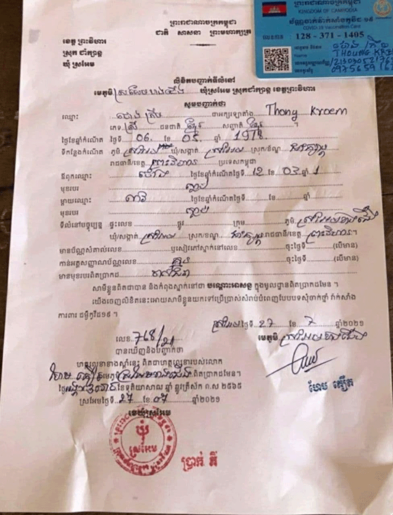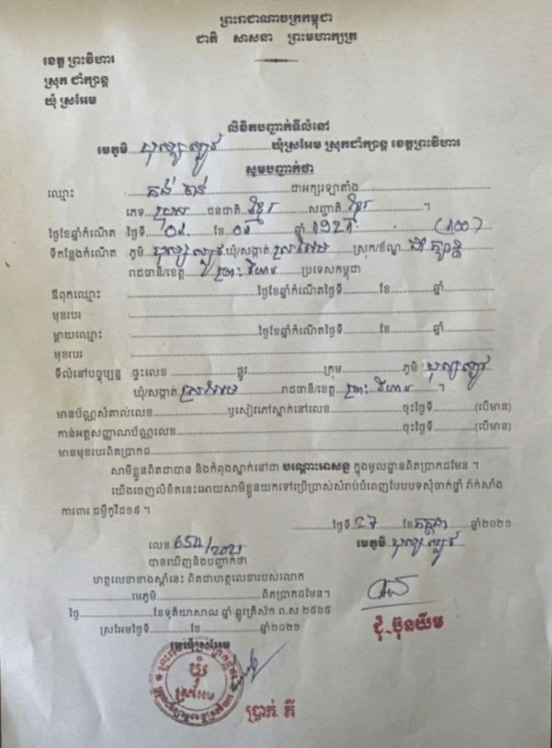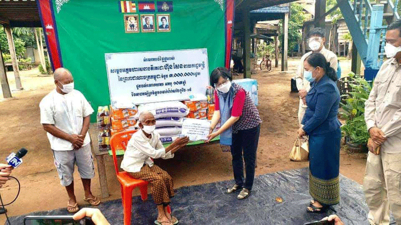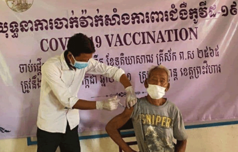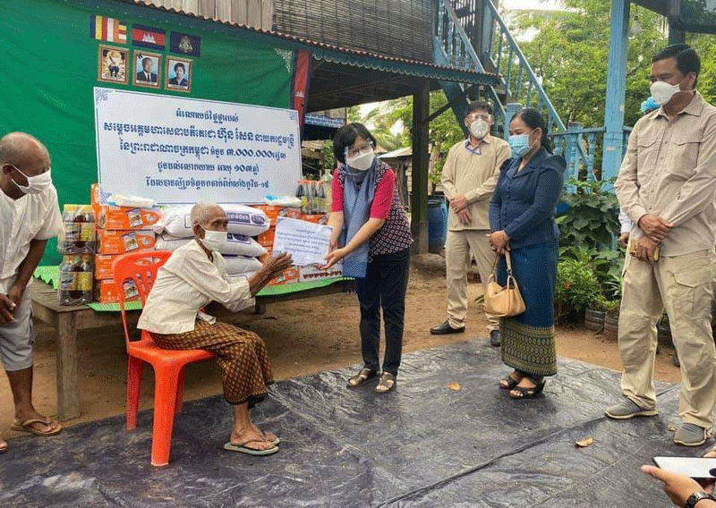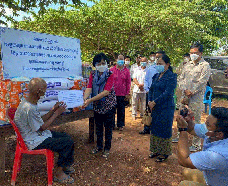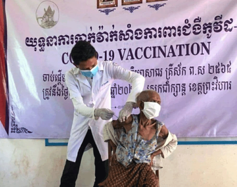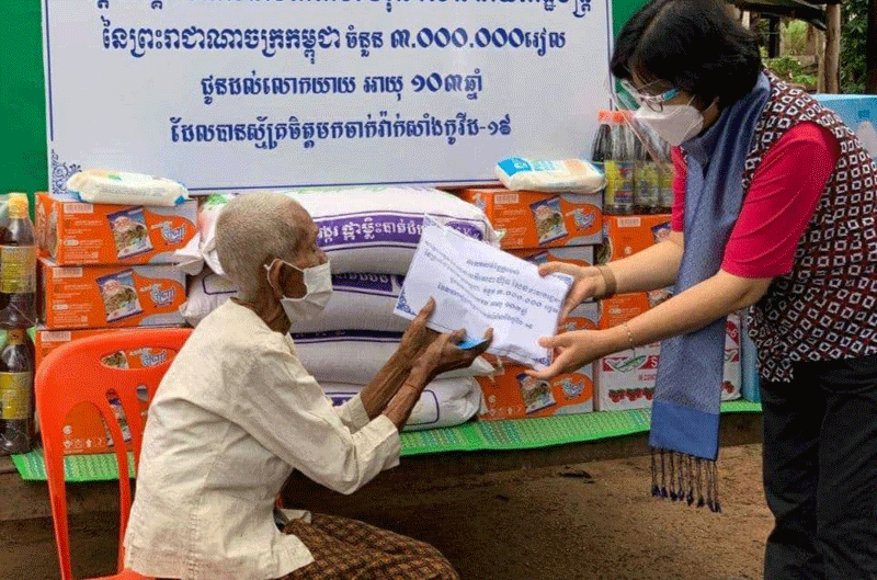 ព្រះវិហារៈ លោកយាយ ថោង ក្រឹម ដែលមានព្រះជន្ម ១០៣ឆ្នាំ រស់នៅឃុំស្រអែម ស្រុកជាំក្សាន្ត ខេត្តព្រះវិហារ និងលោកតា គង់ ចាន់ ព្រះជន្ម ១០០ឆ្នាំ ដែលរស់នៅភូមិតេជោបុសស្បូវ ស្រុកជាំក្សាន្ត ខេត្តព្រះវិហារ ទទួលថវិកាក្នុងម្នាក់ៗចំនួន ៣លានរៀល ព្រមទាំងគ្រឿងឧបភោគបរិភោគមួយចំនួនទៀត ដែលជាអំណោយរបស់ប្រមុខរាជរដ្ឋាភិបាលកម្ពុជា សម្តេចតេជោ ហ៊ុន សែន និងសម្តេចកិត្តិព្រឹទ្ធបណ្ឌិត ប៊ុន រ៉ានី ហ៊ុនសែន ប្រធានកាកបាទក្រហមកម្ពុជា ដែលប្រគល់ជូនផ្ទាល់ដៃដោយលោកជំទាវ ឱ វណ្ណឌីន រដ្ឋលេខាធិការក្រសួងសុខាភិបាល នៅថ្ងៃទី៣០ ខែកក្កដា ឆ្នាំ២០២១នេះ។ សូមបញ្ជាក់ថា លោកយាយ និងលោកតា ដែលមានព្រះជន្មជាងរយព្រះវស្សាននេះ បានពឹងពាក់កូនចៅនាំទៅវាក់សាំងដោយស្ម័គ្រចិត្ដគ្មានការបង្ខិតបង្ខំពីនណាម្នាក់។ ក្នុងការប្រគល់ថវិការនិងសម្ភារៈនោះដែរ លោកជំទាវ ឱ វណ្ណឌីន បានសួរនាំទៅលោកយាយ និងលោកតា អំពីសុខភាពរបស់គាត់ក្រោយពីការចាក់វ៉ាក់សាំងរួច គាត់បានឆ្លើយថា សុខភាពរបស់គាត់ នៅល្អជាធម្មតាទេគ្មានអ្វីប្រែប្រួលនោះឡើយ៕SPS