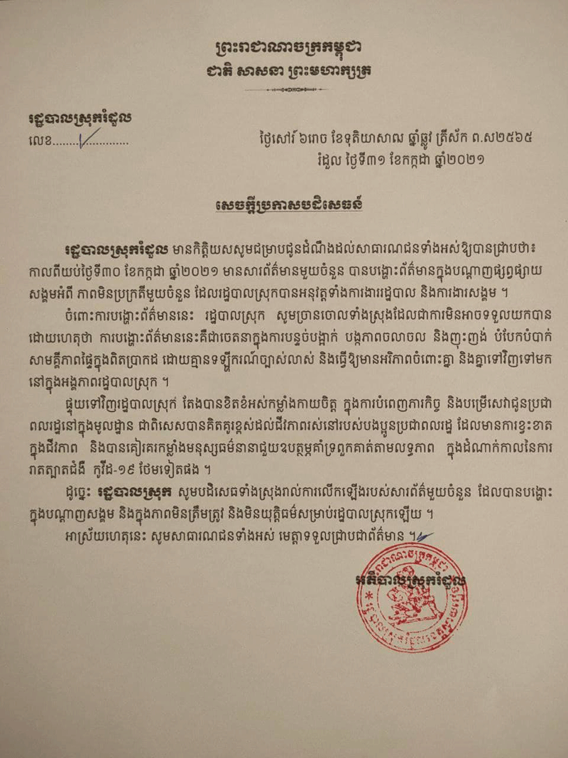 សូមអានលិខិតបំភ្លឺដូចខាងក្រោម៖