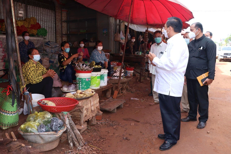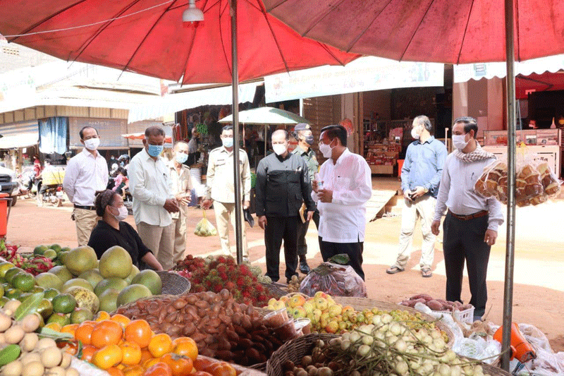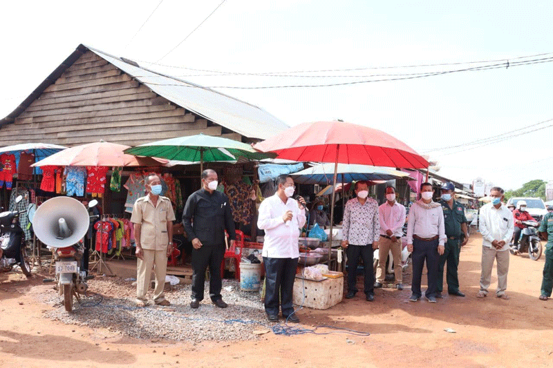កំពង់ធំ ៖ នៅថ្ងៃសៅរ៍ ទី៣១ ខែកក្កដា ឆ្នាំ២០២១ ឯកឧត្តម សុខ លូ អភិបាលខេត្តកំពង់ធំ អមដំណើរដោយអភិបាលរងខេត្ត ថ្នាក់ដឹកនាំមន្ទីរអង្គភាពជំនាញពាក់ព័ន្ធជុំវិញខេត្ត ព្រមទាំងសហការី បានអញ្ជើញចុះពិនិត្យមើលការលក់ដូររបស់បងប្អូនអាជីវករនៅផ្សារអភិវឌ្ឍន៍ស្ទោង និងផ្សារស្ទោងហើយបន្ដចុះពិនិត្យមើលកន្លែងយកសំណាកបងប្អូននៅតំបន់ក្រហម (ភូមិស្ពានគ្រងនៃឃុំចំណាក្រោម) ស្រុកស្ទោង ខេត្តកំពង់ធំ ។