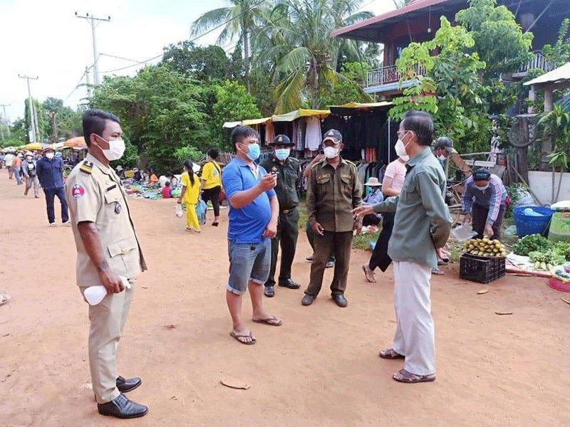 ខេត្តកំពង់ឆ្នាំង :ថ្ងៃទី០១ ខែសីហា ឆ្នាំ២០២១ នេះលោក សុខ សុន្ធីរ អភិបាលរងស្រុកទីកផុស រួមនឹងក្រុមការងារអញ្ជើញចុះពិនិត្យមើលអាជីវករលក់ដូរនៅក្រៅផ្សារបន្ទាប់ពីអាជ្ញាធរចេញសេចក្តីសម្រេចបិទខ្ទប់ផ្សាររមាសជាបណ្តោះអាសន្នក្រោយពីរកឃើញអាជីវករមានវិជ្ជមានកូវីដ១៩ ។