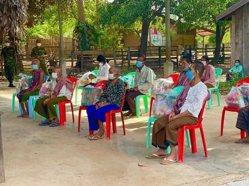 ព្រះវិហារ៖ នៅព្រឹក ថ្ងៃ ច័ន្ទ ទី០២ ខែសីហា ឆ្នាំ ២០២១ រដ្ឋបាល ស្រុកត្បែង មានជ័យ លោក នុត សោភ័ណ្ឌ អភិបាលស្រុក ត្បែង មានជ័យ ដឹកនាំ ក្រុម ការងារស្រុកនាំយក អំណោយសួរសុខទុក្ខ និងសំណេះសំណាលជាមួយលោកតា លោកយាយ ដែលជាចាស់ជរា ចំនួន ២០នាក់ រស់ក្នុងភូមិពោធិ៍ ឃុំពោធិ៍ ស្រុកត្បែង មានជ័យ ខេត្តព្រះវិហារ ដែលជាតំបន់បិទខ្ទប់នៃការកាត់ផ្ដាច់ការរាលដាលកូវិដ១៩។ អំណោយឧបត្ថម្ភពីសប្បុរសជនដែលត្រូវចែកជូនក្នុងម្នាក់ៗ រួមមានដូចជា៖ ១-មី