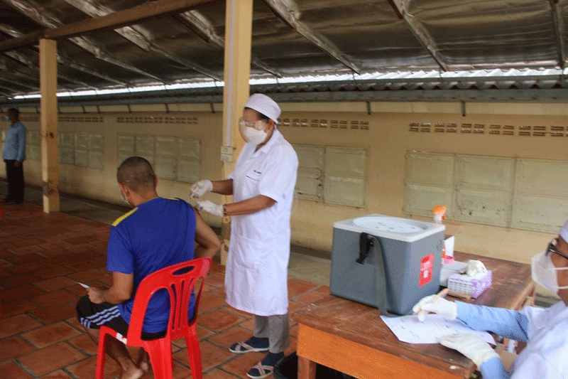 បន្ទាយមានជ័យ៖ ជនស្តារនីតិសម្បទា បន្សាបសារធាតុញៀនចំនួន600នាក់ ស្រី25នាក់ នៅមណ្ឌលជីវិតថ្មីភ្នំបាក់ ស្ថិតនៅក្រុងសិរីសោភ័ណ ខេត្តបន្ទាយមានជ័យ ដែលគ្រប់គ្រងដោយមន្ទីរសង្គមកិច្ច អតីតយុទ្ធជន និងយុវនីតិសម្បទាខេត្ត នៅព្រឹកថ្ងៃទី03 ខែសីហា ឆ្នាំ2021នេះ ទទួលបានការចាក់វ៉ាក់សាំងបង្ការជំងឺខូវីដ-19។