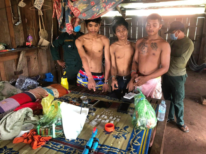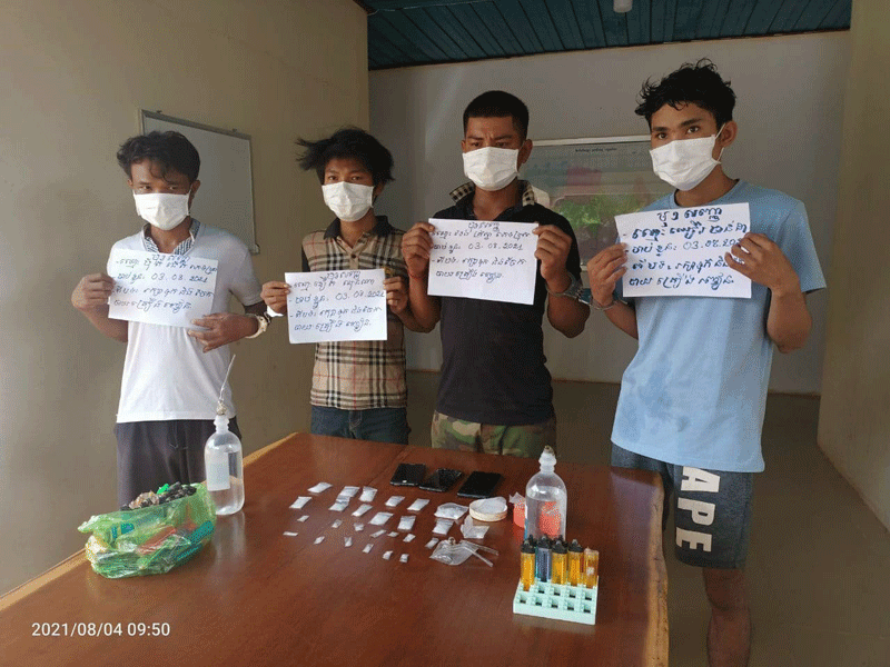 ជនសង្ស័យដែលសមត្ថកិច្ចត្រូវឃាត់ខ្លួន ១/ឈ្មោះ ឈៀរ ចាន់ ប្រុស អាយុ២៤ឆ្នាំ មុខរបរ ជាងអ៊ុតម៉ូតូ ២/ខឿត ឈុនណា អាយុ២០ឆ្នាំ មុខរបរ មិនពិតប្រាកដ ៣/វែង គ្រឹស្នា អាយុ២៤ឆ្នាំ មុខរបរមិពិតប្រាកដ ៤/បុ័ត ឆើត អាយុ៣៧ មុខរបរកសិករ