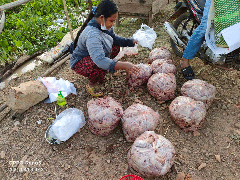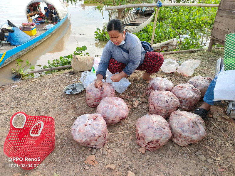 ឈ្មួញអ្នកទិញសាច់សត្វកណ្តុកដែលបកស្បែករួចបាននិយាយាអោយដឹងថាសាច់សត្វកណ្តុលនេះគាត់ទួលទិញពីម៉ូយដែលគេដាក់.អង្គប់.លបឬដើរឆ្លុះចាក់តាមខ្នងកោះឬតាមចំការឆ្ងាយៗហើយព្រឹកនេះគាត់ប្រមូលទិញបានប្រមាណជា១០០គីឡូដោយក្នុង១គីឡូថ្លៃ៦០០០រៀលហើយបានធ្វើកាលក់រាយឬបោះអោយម៉ូយយកទៅលក់បន្តឬធ្វើជាម្ហូបសម្រាប់ក្លែមវិញតម្លៃ៨០០០រៀល ។