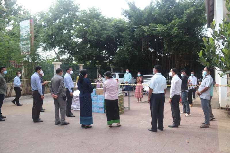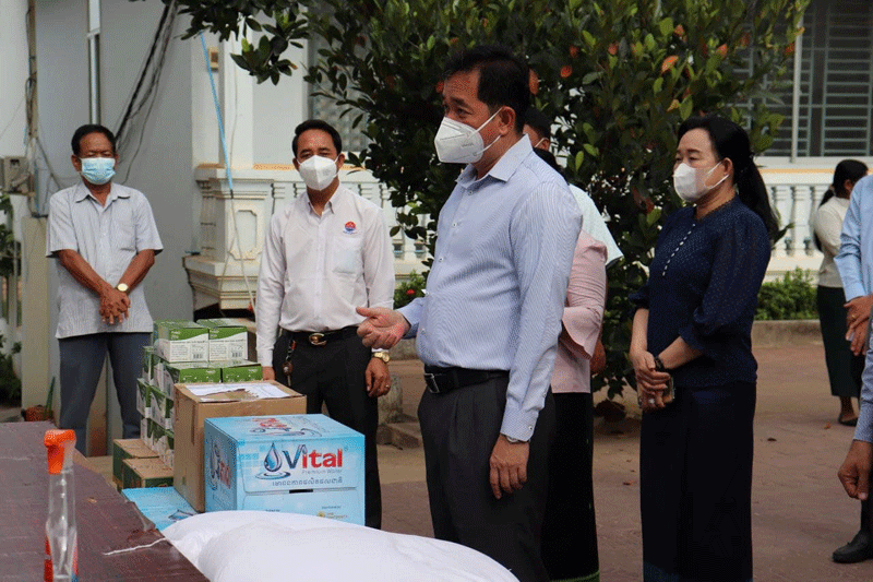 កំពង់ចាម : ឯកឧត្តម អ៊ុន ចាន់ដា អភិបាលខេត្តកំពង់ចាម និងជាប្រធានគណៈកម្មការខេត្តប្រយុទ្ធប្រឆាំងនឹងជម្ងឺកូវីដ ១៩ អមដំណើរដោយ អភិបាលរងខេត្ត និងមន្ត្រីពាក់ព័ន្ធ នាព្រឹក ថ្ងៃទី ៦ ខែសីហា ឆ្នាំ ២០២១ នេះ បានអញ្ជើញចុះសួរសុខទុក្ខ និងនាំយកអំណោយរដ្ឋបាលខេត្ត ផ្តល់ជូនមន្រ្តីរាជការនៃមន្ទីរព័ត៌មាន ខេត្តកំពង់ចាម ដែល កំពុង ធ្វើចត្តាឡីស័ក បន្ទាប់ ពី ពាក់ព័ន្ធ និង ករណី វិជ្ជមាន កូវីដ -១៩ ។
