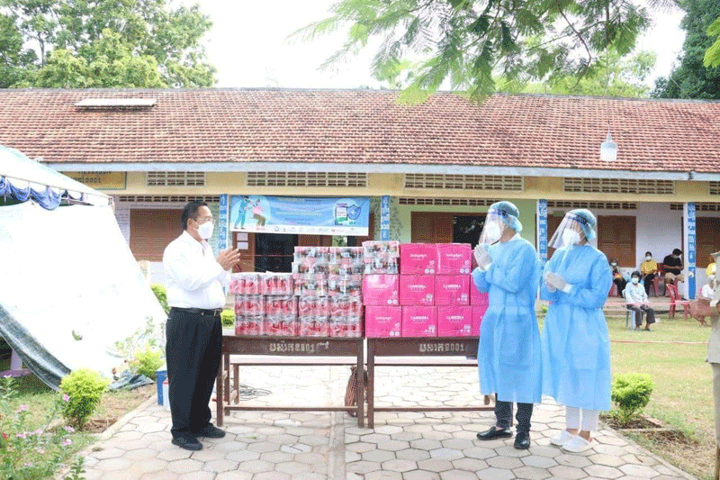លោកក៏បានថ្លែងអំណរគុណដល់ក្រុមគ្រូពេទ្យចាក់វ៉ាក់សាំង ព្រមទាំងប្រជាពលរដ្ឋដែលបានស្ម័គ្រចិត្តចូលរួមយ៉ាងសកម្មផុល ផុសក្នុងការមកទទួលការចាក់វ៉ាក់សាំងការពារជំងឺកូវីដ-១៩ ដើម្បីចូលរួមជាមួយរាជរដ្ឋាភិបាលក្នុងការប្រយុទ្ធប្រឆាំងនឹងជំងឺកូវីដ-១៩។`