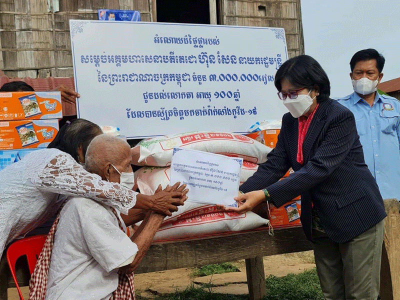កំពង់ចាម : លោក តាវ័យជាង ១០០ឆ្នាំ ចំនួន ២រូប ដែល រស់នៅ ក្នុង ឃុំព្រែកដំបូក ស្រុកស្រីសន្ធរ ខេត្តកំពង់ចាម ទទួល បាន អំណោយពី សម្តេច អគ្គមហាសេនាបតី តេជោ ហ៊ុន សែន នាយករដ្ឋមន្ត្រី កម្ពុជា បន្ទាប់ ពី លោកតាទាំង២រូប ស្ម័គ្រចិត្ត ចាក់ វ៉ាក់សាំង បង្ការ ជំងឺ កូវីដ -១៩ ដេីម្បី ការពារ អាយុជីវិត របស់ ខ្លួន ។