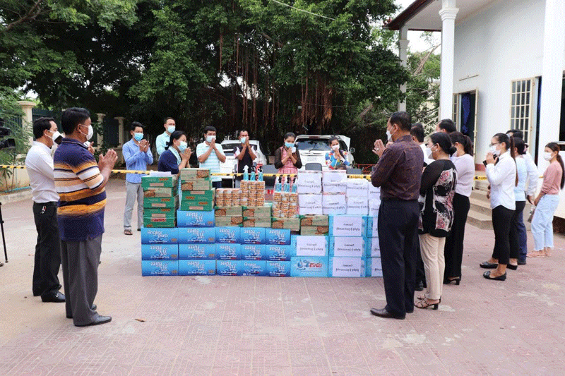 លោក អាន ស៊ីណា ប្រធានមន្ទីរអភិវឌ្ឍន៍ ខេត្តត្បូងឃ្មុំ និងលោកស្រី ថា ម៉ាណែត ឧបត្ថម្ភមី ៨កេស ទឹកសុទ្ធ ៨យួរ ត្រីខ ៨យួរ សម្រាប់មន្ត្រីជាប់ចត្តាឡីស័ក និងទឹកអាល់កុលចំនួន ១២ដប រួមទាំង ថវិកាសរុប ១លាន ២សែនរៀល សម្រាប់មន្ទីរព័ត៌មានខេត្ត និងមន្ត្រីបំរើការងារ ។