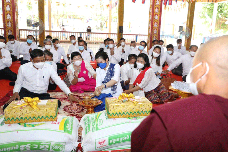 លោកជំទាវ ក៏បានទូលប្រគេនព្រះសង្ឃ និងពុទ្ធបរិស័ទទាំងអស់ សូមអញ្ជើញទៅចាក់វ៉ាក់សាំងការពារជំងឺកូវីដ-១៩ ឲ្យបានគ្រប់ៗគ្នា និងត្រូវការពារខ្លួនជានិច្ច ដោយអនុវត្តតាមវិធានការរបស់រាជរដ្ឋាភិបាល ៣ការពារ ៣កុំ និងវិធានការនានារបស់ក្រសួងសុខាភិបាល ដើម្បីការពារខ្លួនពីការឆ្លងជំងឺកូវីដ-១៩។
