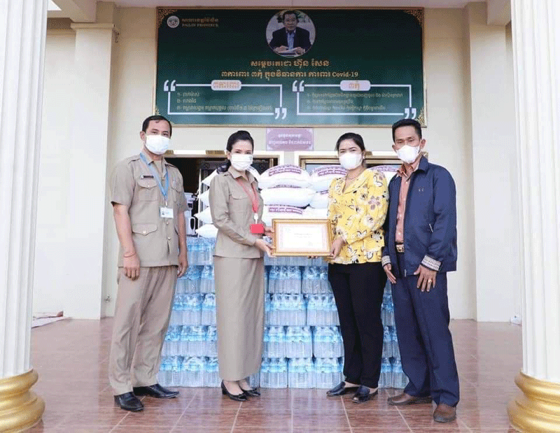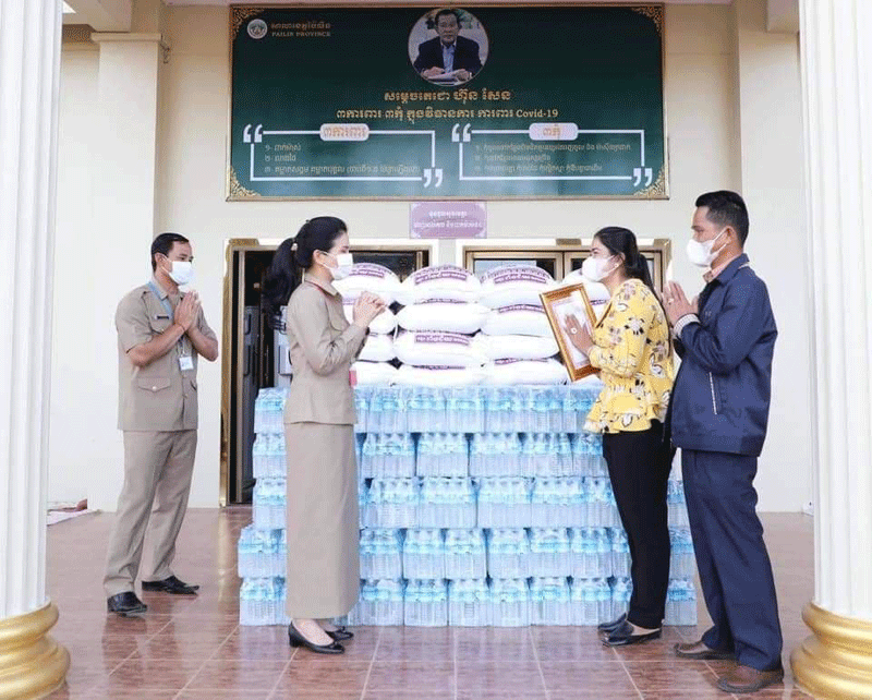 លោកជំទាវ បាន ស្រីមុំ ប្រធានគណបក្សខេត្ត និងជាអភិបាលខេត្តប៉ៃលិន បានទទួលជួប និងថ្លែងអំណរគុណលោក ស៊ិន លាភ និងលោកស្រី សារ សុខឃឹម ដែលបានឧបត្ថម្ភអង្ករចំនួន២តោន និងទឹកសុទ្ធចំនួន៣០០យួរ ដល់រដ្ឋបាលខេត្ត ដើម្បីចូលរួមក្នុងយុទ្ធនាការប្រយុទ្ធប្រឆាំង ទប់ស្កាត់ការឆ្លងរីករាលដាលនៃវីរុសកូវីដ-១៩ បម្លែងខ្លួនថ្មីប្រភេទដែលតា (Delta) ។