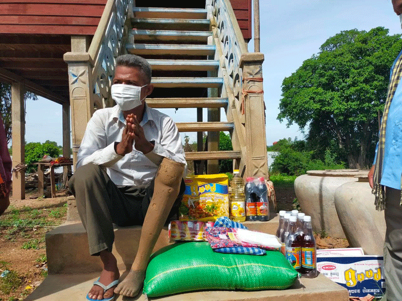 បាននាំយកអំណោយរបស់រាជរដ្ឋាភិបាលប្រគល់ជូនគ្រួសារអតីតយុទ្ធជនដែលកំពង់មានជីវភាពខ្វះខាតចំនួនពីរគ្រួសារ:១ លោក យិន សុវណ្ណារ៉េត ដែលជាយោធិនពិការកំបុតជើងខាងឆ្វេងលើជង្គង់ មានមុខរបរជាអ្នករត់កង់បីរសនៅក្នុងភូមិត្រពាំងបី សង្កាត់កំពង់ឆ្នាំង ក្រុងកំពង់ឆ្នាំង និងមានសមាជិកក្នុងគ្រួសារចំនួន 6 នាក់ ។២ លោក ស៊ីវ សីហា យោធិនពិការ កំបុតជើងឆ្វេងក្រោមជង្គង់ ពោះម៉ាយមានសមាជិកក្នុងគ្រួសារចំនួន ៤ នាក់ កំពង់រសនៅក្នុងភូមិព្រែកឆ្ដោរឃុំកំពង់អុសស្រុកជលគិរីខេត្តកំពង់ឆ្នាំង ។ ក្នុងឱកាសជួបសំណេះសំណាលនិងបាននាំយកអំណោយប្រគល់ជូននោះដែរលោក ឈាង ចន្ធី អនុប្រធានមន្ទីរ ស.អ.យ .ខេត្តបានមានមតិសំណេះសំណាល និងការផ្ដាំផ្ញើសុខទុក្ខ របស់អភិបាលនៃគណៈអភិបាលខេត្ត ថ្នាក់ដឹកនាំនៃគណៈកម្មាធិការសមាគមអតីតយុទ្ធជនកម្ពុជាខេត្តទាំងអស់ត្រូវយកចិត្តទុកដាក់លើបញ្ហាសុខភាពដោយត្រូអនុវត្តតាមប្រមុខរាជរដ្ឋាភិបាលក៍ដូចជាក្រសួងសុខាភិបាល៣ការពារ៣កុំនិងរួមគ្នាទប់ស្កាត់ជម្ងឺកូវិដ១៩ ។ និងបាននាំយកអំណោយដែលត្រូវទទួលបានក្នុងមួយគ្រួសាររួមមាន : អង្ករចំនួន 20 kg គុយទាវមួយយួរ ទឹកត្រី 1 យួរ ទឹកស៊ីអ៊ីវ 1 យួរ ត្រីខ 1 យួរ សារុង 1 និងក្រមា 1។ ក្នុងនោះផងដែរ ក្រុមគ្រួសារអតីតជនមានសេចក្តីសោមនស្សរីករាយជាពន់ពេកដោយមានការយកចិត្តទុកដាក់ពីរាជរដ្ឋាភិបាលក៏ដូចជាថាដឹកនាំខេត្ត។សូមថ្លែងអំណរគុណនិងជូនពរដល់ថ្នាក់ដឹកនាំខេត្តទាំងអស់សូមមានសុខភាពល្អបរិបូណ៍នឹងពុទ្ធពរទាំងបួនប្រការគឺអាយុ វណ្ណៈ សុខៈ ពលៈ កុំបីឃ្លៀងឃ្លាតឡើយ៕ សុក្ខារិន