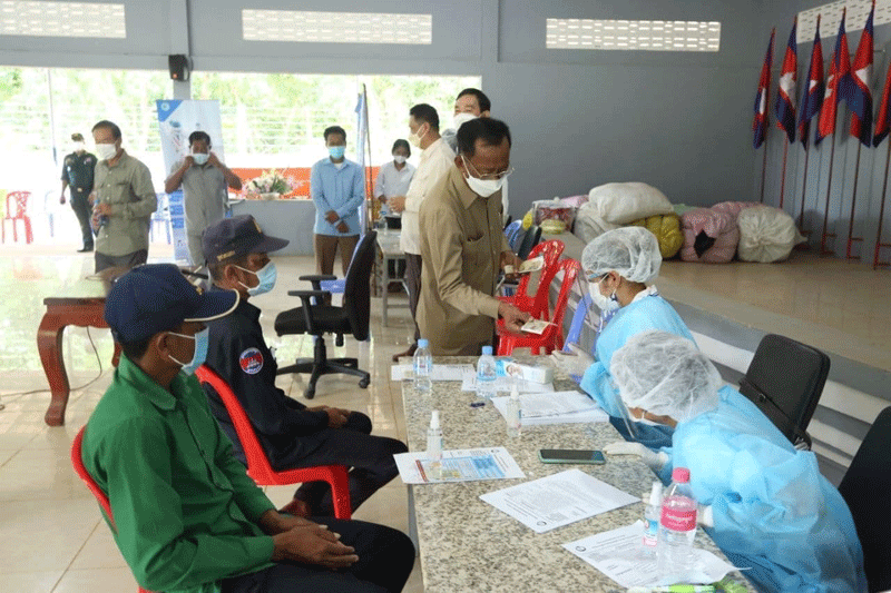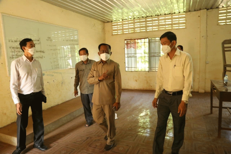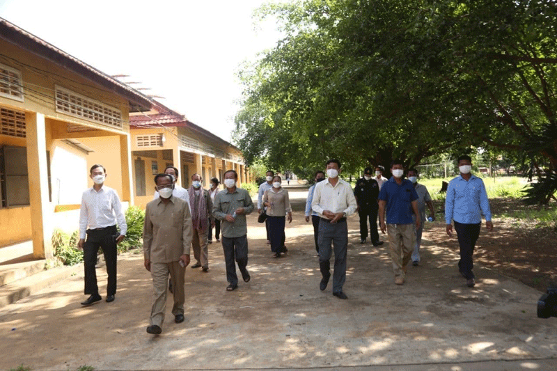 ត្បូងឃ្មុំ : ឯកឧត្តម វង សូត រដ្ឋមន្ត្រីក្រសួងសង្គមកិច្ច អតីតយុទ្ធជន និងយុវនីតិសម្បទា និងក្រុមការងារថ្នាក់ជាតិចុះពង្រឹងមូលដ្ឋានស្រុកពញាក្រែក ខេត្តត្បូងឃ្មុំ និងឃុំជាច ស្រុកកំចាយមារ ខេត្តព្រៃវែង នាព្រឹកថ្ងៃទី០៩ ខែសីហា ឆ្នាំ២០២១នេះ បានអញ្ជើញចុះពិនិត្យទីតាំងធ្វើចត្តាឡីស័ក សម្រាប់ទទួលពលករត្រឡប់ពីប្រទេសថៃ និងពិនិត្យការអនុវត្តការចាក់វ៉ាក់សាំង បង្ការ ជំងឺ កូវីដ-១៩ នៅស្រុកពញាក្រែក ខេត្តត្បូងឃ្មុំ និងឃុំជាច ស្រុកកំចាយមារ ខេត្តព្រៃវែង។