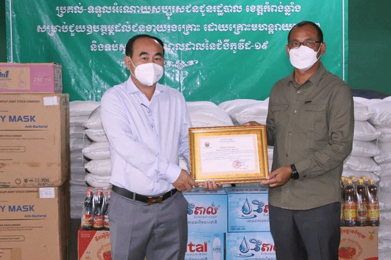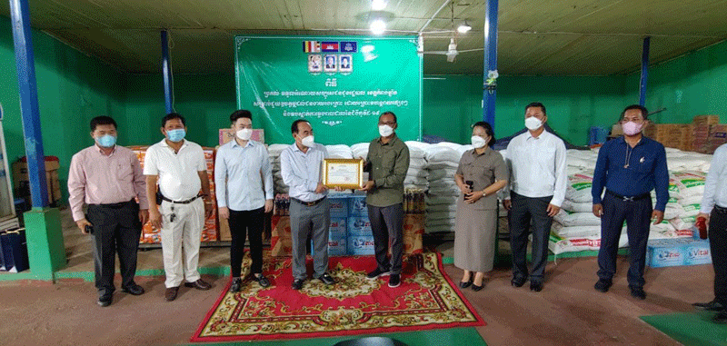 ខេត្តកំពង់ឆ្នាំងៈលោកលី ហុងហួរ នៅព្រឹកថ្ងៃទី១០ ខែសីហា ឆ្នាំ ២០២១បាននាំយកអង្ករចំនួន៥តោន,ម៉ាស់១០០០០,