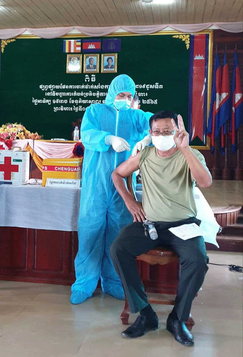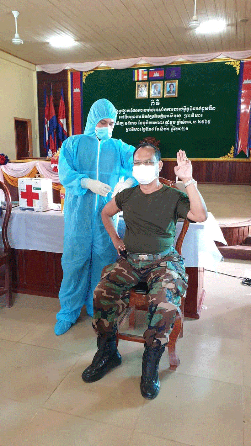 ព្រះវិហារៈ នៅព្រឹកថ្ងៃទី១១ ខែសីហា ឆ្នាំ២០២១នេះ លោកឧត្តមសេនីយ៍ទោ ច័ន្ទ សុភក្រ្តា មេបញ្ជាការតំបន់ប្រតិបត្តការសឹករងព្រះវិហារ បានអញ្ជើញជាអធិបតី បើកដំណើរការ យុទ្ធនាការចាក់វ៉ាក់សាំងបង្កាជំងឺកូវីដ-១៩ ដូសទី៣ (ដូសជំរុញ) ប្រភេទ( អាស្ត្រាហ្សេនីកា) ដែលជាអំណោយដ៏ថ្លៃថ្លា របស់សម្តេចអគ្គមហាសេនាបតីតេជោ ហ៊ុន សែន នាយករដ្ឋមន្ត្រី នៃព្រះរាជាណាចក្រកម្ពុជា ជូនដល់កងកម្លាំងទីបញ្ជាការ ទិសយោធភូមិភាគទី ៤ ដែលបំពេញភារកិច្ច ជួរមុខតាមបន្ទាត់ព្រំដែនកម្ពុជា-ថៃ ឡាវ ដើម្បីប្រឆាំងនឹងការវាយ ប្រហារពីវីរុសកូវីដ~១៩ បំលែងថ្មី ប្រភេទដែលតា(Delta) ដែលកំពុងផ្ទុះខ្លាំងពីប្រទេសថៃ។ យុទ្ធនាការនេះធ្វើឡើងនៅទីបញ្ជាការតំបន់ប្រតិបត្តការសឹករងព្រះវិហារ ។ លោកឧត្តមសេនីយ៍ទោ មេបញ្ជាការ បានមានប្រសាសន៍លើកឡើងថា៖ វ៉ាក់សាំង ដែលចាក់ជូនបងប្អូនមន្ត្រីរាជការកងកម្លាំង គ្រួសារទ័ពជួរមុខដូសទី៣ នាពេលនេះ គឺជាការផ្តល់ជូនដ៏ពិសិទ្ធ ពីសំណាក់សម្តេចតេជោ ហ៊ុន សែន នាយករដ្ឋមន្ត្រី ដែលសម្តេចបានខិតខំគ្រប់បែបយ៉ាង ដើម្បីរកវ៉ាក់សាំង និងបានដាក់ចេញវិធានការ សម្រាប់ចាក់ជូនមន្ត្រីរាជការ ប្រជាពលរដ្ឋរបស់យើងឲ្យបានគ្រប់ៗគ្នា ។ លោកបានបន្តថា៖ ក្នុងនាមខ្ញុំបាទជាមេបញ្ជាការ ជំនួសមុខឱ្យ នាយទាហាន នាយទាហានរង និងពលទាហាន ទូទាំងទីបញ្ជាការតំបន់សឹក សូមគោរពថ្លែងអំណរគុណយ៉ាងជ្រាលជ្រៅបំផុត ជូនចំពោះសម្តេចតេជោ ហ៊ុន សែន នាយករដ្ឋមន្ត្រី នៃព្រះរាជាណាចក្រកម្ពុជា ដែលជានិច្ចជាកាល សម្តេចតែងតែរួមសុខ រួមទុក្ខ ជាមួយមន្ត្រីរាជការកងកម្លាំង ក្រោមឱវាទ ដែលបំពេញភារកិច្ចនៅតាមបន្ទាត់ព្រំដែនកម្ពុជា-ថៃ ឡាវនិងប្រជាពលរដ្ឋគ្រប់កាលៈទេសៈ ដើម្បីឱ្យរួចផុតពីជំងឺកូវីដ-១៩ នេះផងដែរ៕(ដោយ សេង ពិសិដ្ឋ)