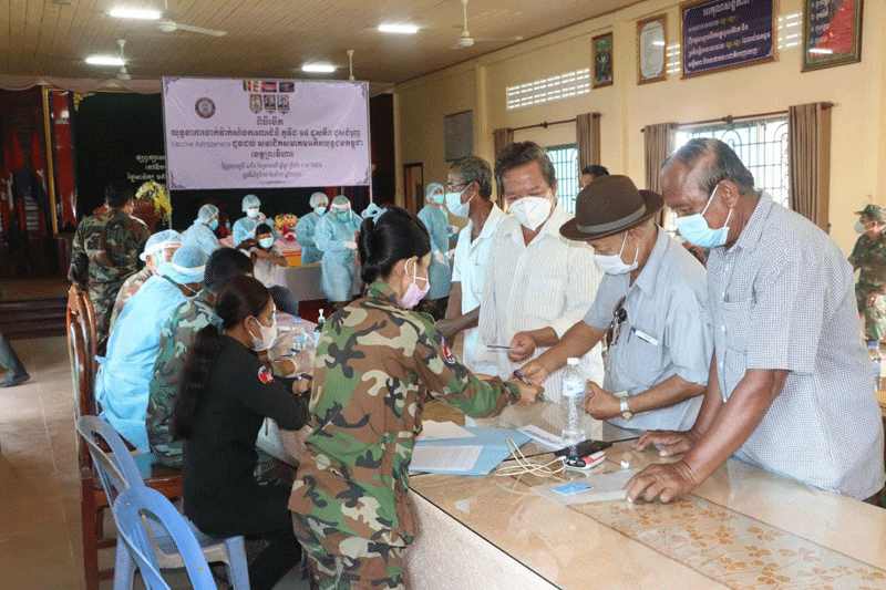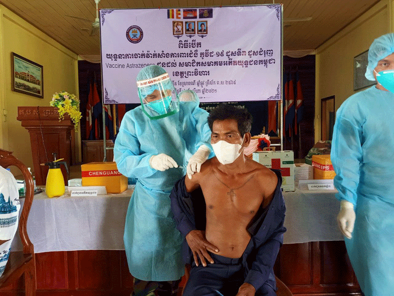ព្រះវិហារៈ នៅព្រឹកថ្ងៃទី១២ ខែសីហា ឆ្នាំ២០២១នេះ លោកឧត្តមសេនីយ៍ទោ ច័ន្ទ សុភក្រ្តា មេបញ្ជាការតំបន់ប្រតិបត្តការសឹករងព្រះវិហារ និងជាប្រធានសមាគមន៍អតីតយុទ្ធជន កម្ពុជា ខេត្តព្រះវិហារ បានអញ្ជើញជាអធិបតី បើកដំណើរការ យុទ្ធនាការចាក់វ៉ាក់សាំងបង្កាជំងឺកូវីដ-១៩ ដូសទី៣ (ដូសជំរុញ) ប្រភេទ( អាស្ត្រាហ្សេនីកា) ជូនអតីតយុទ្ធជននិងគ្រួសារ អតីត យុទ្ធជននៅទីបញ្ជាការតំបន់ប្រតិបត្តការសឹករងព្រះវិហារ ។
