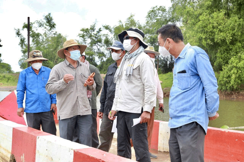 ត្បូងឃ្មុំ : ឯកឧត្តម ជាម ច័ន្ទសោភ័ណ អភិបាលខេត្តត្បូងឃ្មុំ អមដំណើរដោយ មន្ត្រី ពាក់ព័ន្ធ និងអាជ្ញាធរមូលដ្ឋាន នាព្រឹកថ្ងៃទី១២ ខែសីហា ឆ្នាំ២០២១ នេះ បានអញ្ជេីញចុះពិនិត្យប្រព័ន្ធធារាសាស្ត្រ២កន្លែង ហេដ្ឋារចនាសម្ព័ន្ធសុខាភិបាល និងការចាក់វ៉ាក់សាំងបង្ការជំងឺកូវីដ១៩ ជូនពលរដ្ឋក្នុងស្រុកក្រូចឆ្មារ ។ ដែលប្រព័ន្ធធារាសាស្ត្រ២ទីតាំង ក្នុងស្រុកក្រូចឆ្មារ រួមមានបឹងកន្តេរ និង ទំនប់ស្ទាក់ទឹកព្រែកតាកុច ជាទីតាំងប្រភពទឹកយ៉ាងសំខាន់នារដូវប្រាំង សម្រាប់ស្តុកទឹក និងបង្ហូរទឹកប្រើប្រាស់ និងបង្កបង្កើនផលរបស់ប្រជាកសិករ ស្ថិតក្នុងស្រុកក្រូចឆ្មារ ។