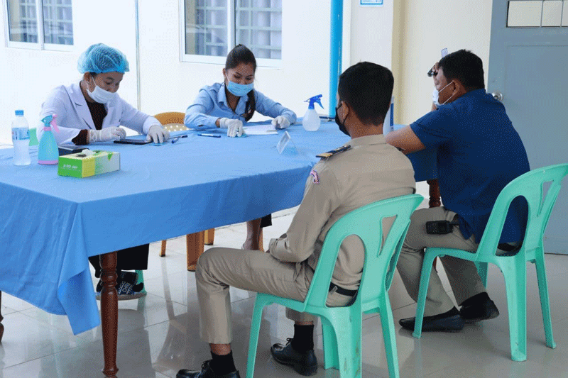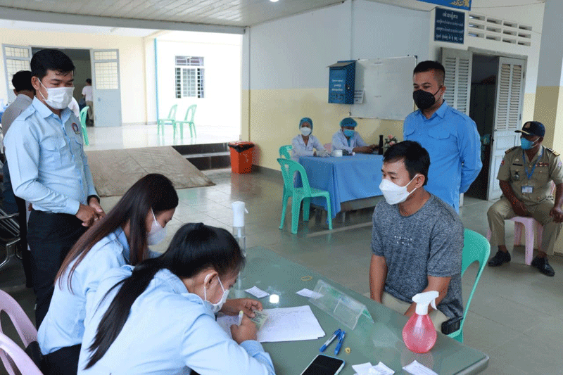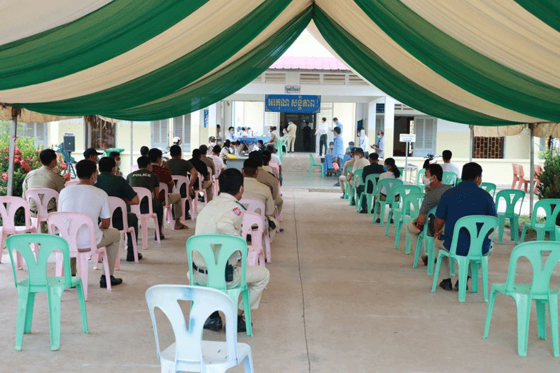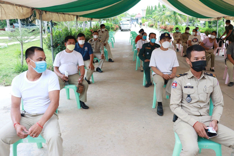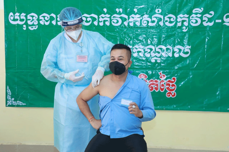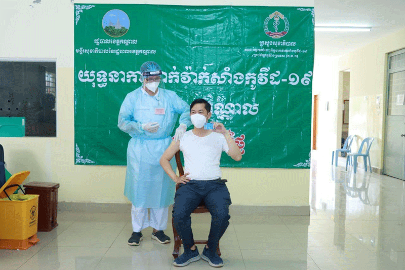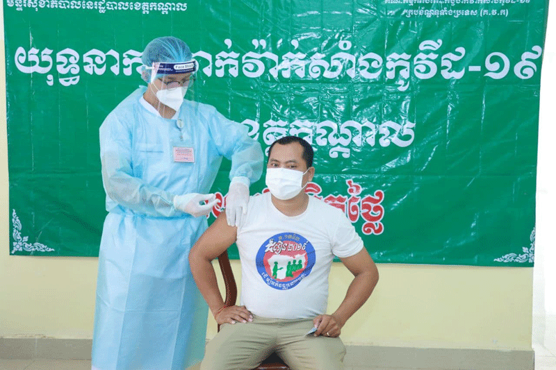 ខេត្តកណ្ដាល៖ នៅព្រឹកថ្ងៃទី១៥ ខែសីហា ឆ្នាំ២០២១ លោក ប៊ុន ផេង អភិបាលស្រុកខ្សាច់ កណ្ដាល អញ្ជើញចាក់វ៉ាសាំង ការពារជំងឺកូវីដ-១៩ ដូសទី៣ (ដូសជំរុញ) និងចុះពិនិត្យមើល ការចាក់វ៉ាក់សាំង ការពារជំងឺកូវីដ១៩ ដូសទី៣ (ដូសជំរុញ) ជូនដល់មន្ត្រីរាជការជួរមុខ ក្រុមគ្រូពេទ្យ កងកម្លាំង និងគ្រូបង្រៀន ក្នុងស្រុកខ្សាច់កណ្ដាល នៅមន្ទីរពេទ្យបង្អែក ស្រុកខ្សាច់កណ្ដាល ខេត្តកណ្តាល។