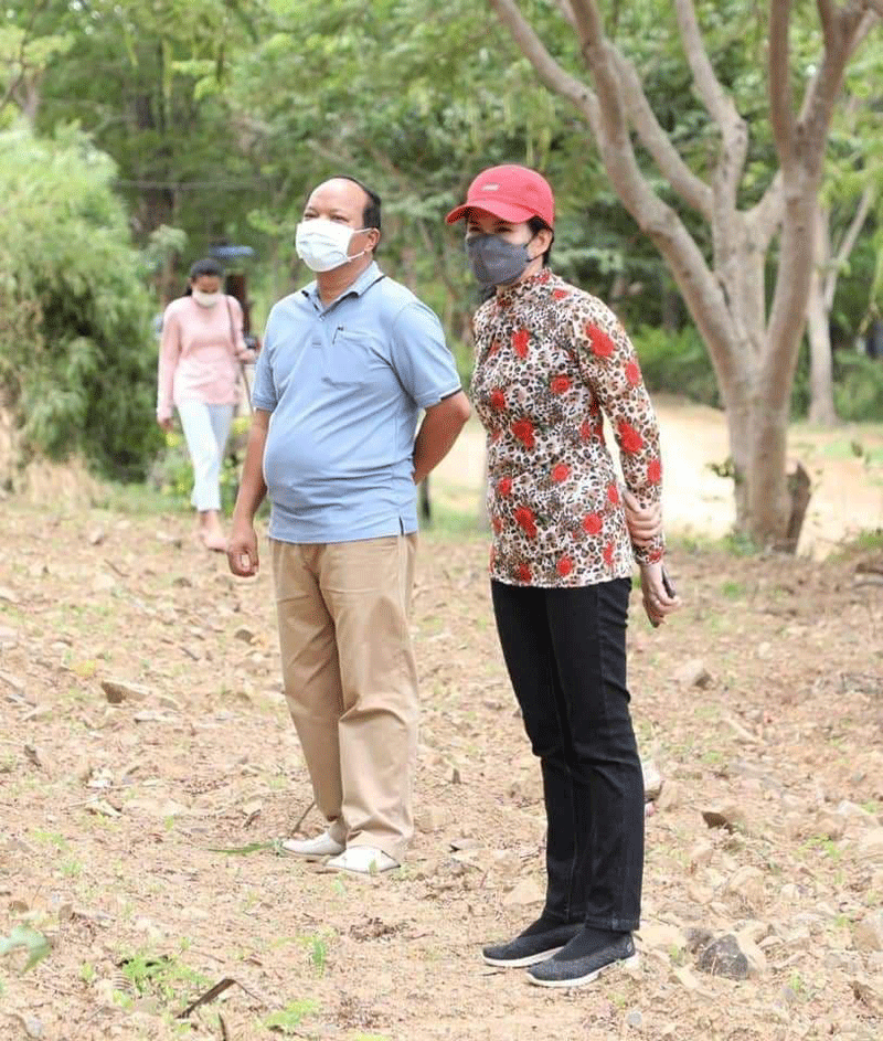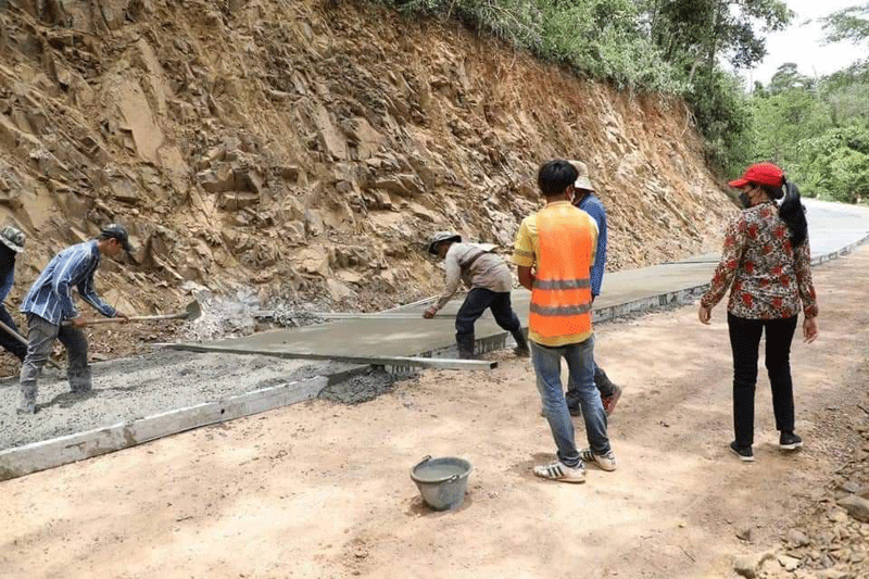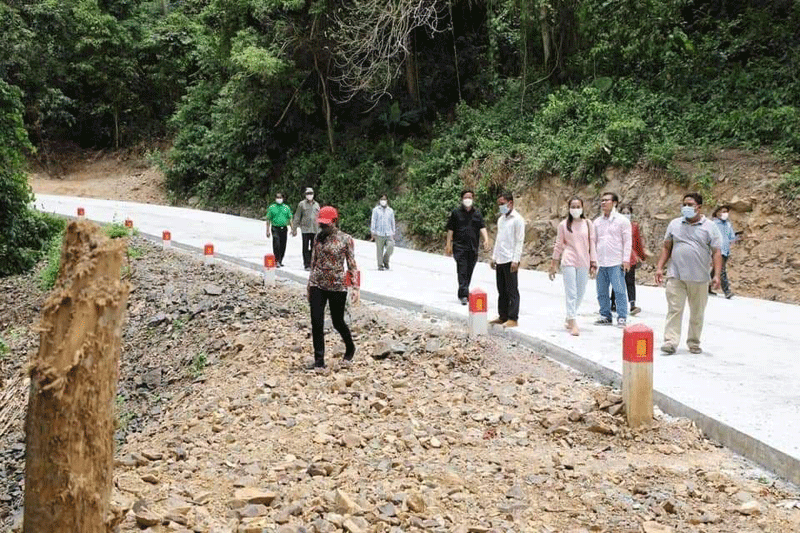 ប៉ៃលិន ៖ លោកជំទាវ បាន ស្រីមុំ អភិបាលខេត្តប៉ៃលិន បានដឹកនាំមន្រ្តីជំនាញ ចុះពិនិត្យមើលដំណើរនៃការស្ថាបនាផ្លូវឡើងទៅរមណីយដ្ឋានទឹកធ្លាក់អូរតាវ៉ៅ ហៅភ្នំខៀវ ដែលបានស្ថាបនាចាក់បេតុងអាមេជិតរួចរាល់ហើយមានប្រវែងជាង២ពាន់ម៉ែត្រ ហើយនៅសងខាងដងផ្លូវចូលទៅក្នុងរមណីយដ្ឋាន មានការកែលម្អធ្វើសួនច្បារដាំផ្កាភ្ញីបន្ថែម និងតុបតែងផ្កាសិប្បនិម្មិតមួយចំនួន គឺរក្សាទុកតែដើមឈើហូបផ្លែធំៗ ដូចជាដើមស្វាយ ដើមសាវម៉ាវ និងដើមឈើមានតម្លៃជាដើម សម្រាប់ទាក់ទាញភ្ញៀវទេសចរជាតិ និងអន្តរជាតិ នាពេលបញ្ចប់ការឆ្លងរីករាលដាលនៃជំងឺកូវីដ ១៩ ខាងមុខ ។