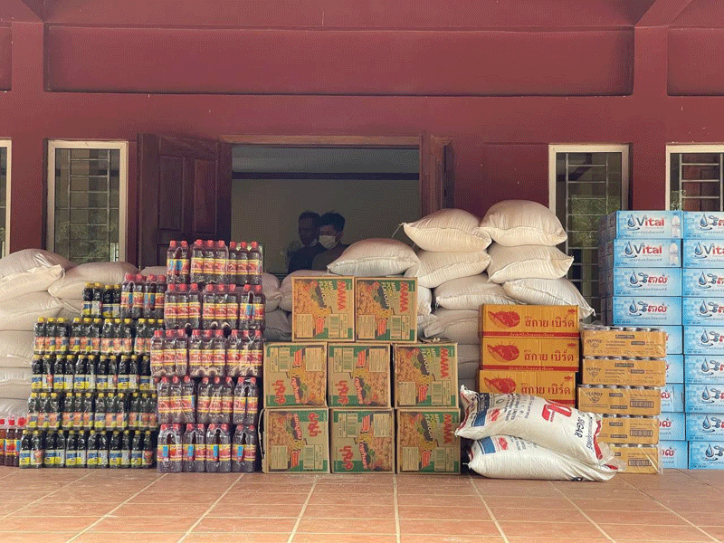 គ្រឿងសម្ភារះហូបច្កដែលបាននាំយកមកប្រគល់ជូនអាជ្ញាធស្រុកទឹកផុសនៅថ្ងៃនេះរួមមាន អង្ក៣តោន.មីម៉ាម៉ា៨កេះធំ.ត្រីខ៥កេះ.ទឹកដោះគោ៥កេះ.ស្កស១០០គីឡូ.ទឹកត្រី៥០យួរ.ទឹកស៊ីអ៉ី៥០យួរ.ទឹកសុទ្ធ៤០កេះ.រួមនិងថវិការ១០០០ដុល្លាផងដែរ៕ សុក្ខារិន