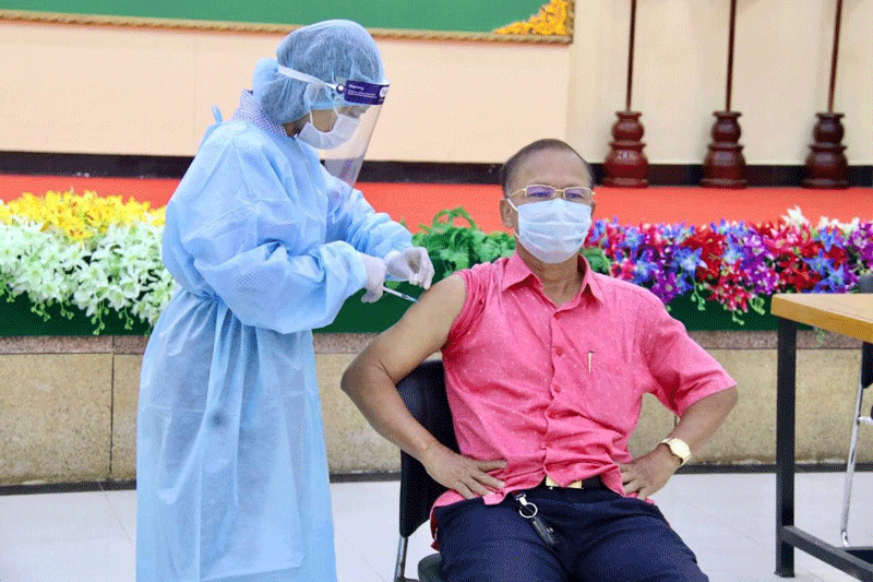 ឯកឧត្តម អភិបាលខេត្តមានប្រសាសន៍ថា ក្រោមការយកចិត្តទុកដាក់ដ៏ខ្ពង់ខ្ពស់របស់សម្តេចអគ្គមហាសេនាបតីតេជោ ហ៊ុន សែន ក្នុងការកៀរគរវ៉ាក់សាំង ដើម្បីជំរុញដល់សុខុមាលភាពរបស់ប្រជាជនកម្ពុជា ទាំងមូល ក្នុងនោះខេត្តស្វាយរៀង គណៈកម្មការចំពោះកិច្ចចាក់វ៉ាក់សាំងកូវីដ-១៩ខេត្ត ក៏បានរៀបចំចាក់ដូសទី៣ ដែលជាដូសជំរុញអង់ទីគ័រក្នុងការបង្ការការឆ្លងរាលដាលនៃជំងឺកូវីដ១៩ និងមេរោគបំលែងខ្លួនថ្មី ដែលកំពុងមានវត្តមានមួយចំនួននៅខេត្តស្វាយរៀងរៀងយេីង។