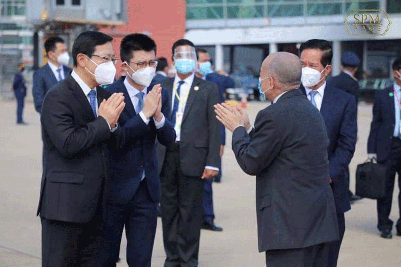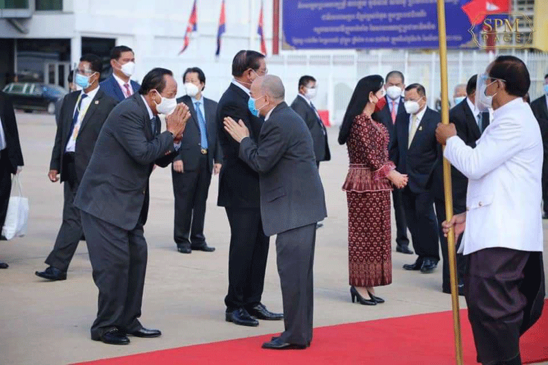 ភ្នំពេញៈ នៅព្រឹកថ្ងៃចន្ទ ៨កើត ខែស្រាពណ៍ ឆ្នាំឆ្លូវ ត្រីស័ក ព.ស. ២៥៦៥ ត្រូវនឹង ថ្ងៃទី១៦ ខែសីហា ឆ្នាំ២០២១នេះ សម្តេចអគ្គមហាសេនាបតីតេជោ ហ៊ុន សែន នាយករដ្ឋមន្ត្រីនៃព្រះរាជាណាចក្រកម្ពុជា និងសម្តេចកិត្តិព្រឹទ្ធបណ្ឌិត ប៊ុនរ៉ានី ហ៊ុនសែន រួមនិងថ្នាក់ដឹកនាំជាន់ខ្ពស់រាជរដ្ឋាភិបាល បានអញ្ជើញថ្វាយព្រះរាជដំណើរព្រះករុណា ព្រះបាទ សម្តេច ព្រះបរមនាថ នរោត្តម សីហមុនី ព្រះមហាក្សត្រ នៃ ព្រះរាជាណាចក្រ កម្ពុជា និង ព្រះមហាក្សត្រី នរោត្តម មុនិនាថ សីហនុ យាងទៅទីក្រុងប៉េកាំង ប្រទេសចិន ដើម្បីពិនិត្យព្រះរាជសុខភាពព្រះអង្គ។