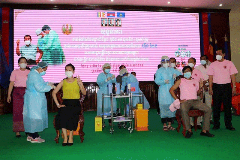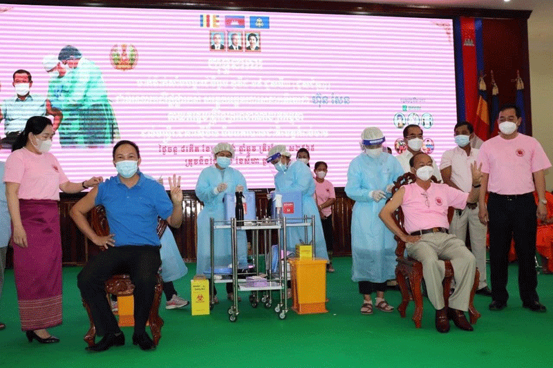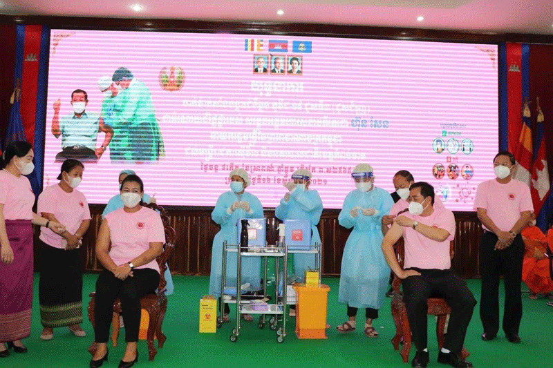 កំពង់ចាម : ឯកឧត្តម អ៊ុន ចាន់ដា អភិបាលខេត្ត កំពង់ចាម និងជាប្រធានគណកម្មការខេត្តប្រយុទ្ធប្រឆាំងនឹងជំងឺកូវីដ-១៩ នាព្រឹកថ្ងៃទី១៦ ខែសីហា ឆ្នាំ ២០២១ នេះ បានអញ្ជើញបើកយុទ្ធនាការចាក់វ៉ាក់សាំងបង្ការជំងឺកូវីដ-១៩ ដូសទី៣ (ដូសជម្រុញ ជូនមន្ត្រីរាជការ កងកម្លាំងប្រដាប់អាវុធ ក្នុងខេត្តកំពង់ចាម ។