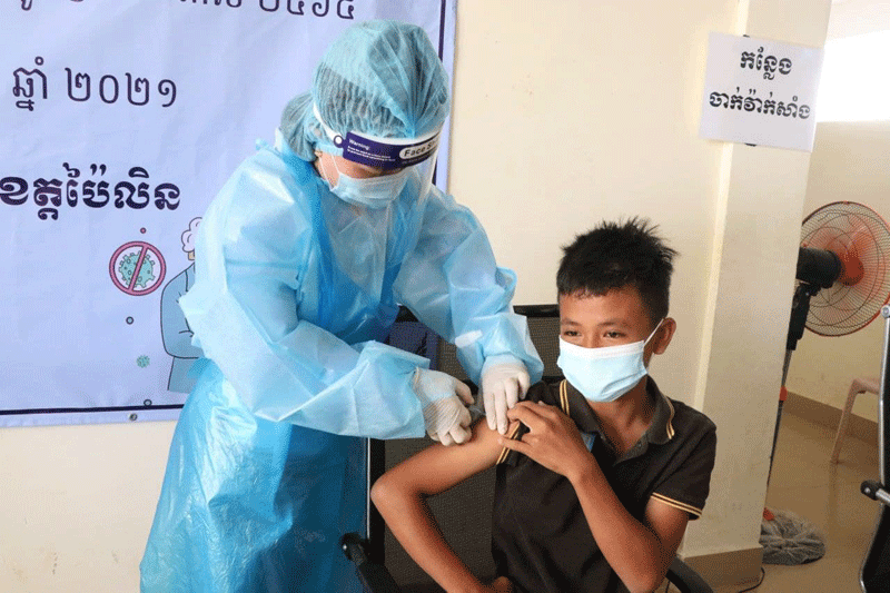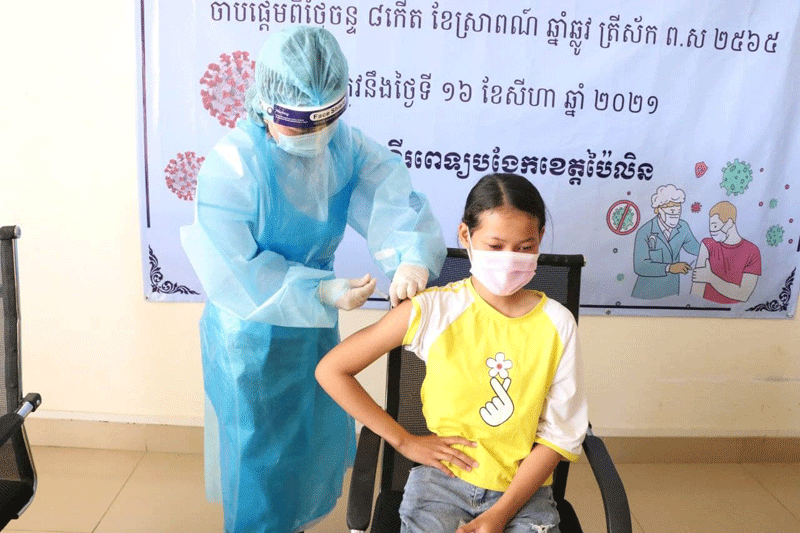 ខេត្តប៉ៃលិន ៖ គេសង្កេតឃើញកុមារ និងយុវជន ប្រមាណ១០០០៩នាក់ ចាប់ពីអាយុ១២ឆ្នាំ ដល់អាយុក្រោម១៨ឆ្នាំ ចាប់ពីថ្ងៃទី១៦ ខែសីហា ឆ្នាំ២០២១ ដែលអាចចាក់វ៉ាក់សាំង ចាប់ផ្តើមនាំគ្នាទៅចាក់វ៉ាក់សាំង នៅក្នុងមន្ទីរពេទ្យបង្អែកខេត្តប៉ៃលិន ស្ថិតក្នុងសង្កាត់ប៉ៃលិន ក្រុងប៉ៃលិន ខេត្តប៉ៃលិន នៅព្រឹកថ្ងៃទី១៦ ខែសីហា ឆ្នាំ២០២១ ក្រោមអធិបតីភាព លោកជំទាវ បាន ស្រីមុំ អភិបាលខេត្តប៉ៃលិន និងជាប្រធានអនុគណៈកម្មការ ចំពោះកិច្ចចាក់វ៉ាក់សាំងកូវីដ-១៩ ។