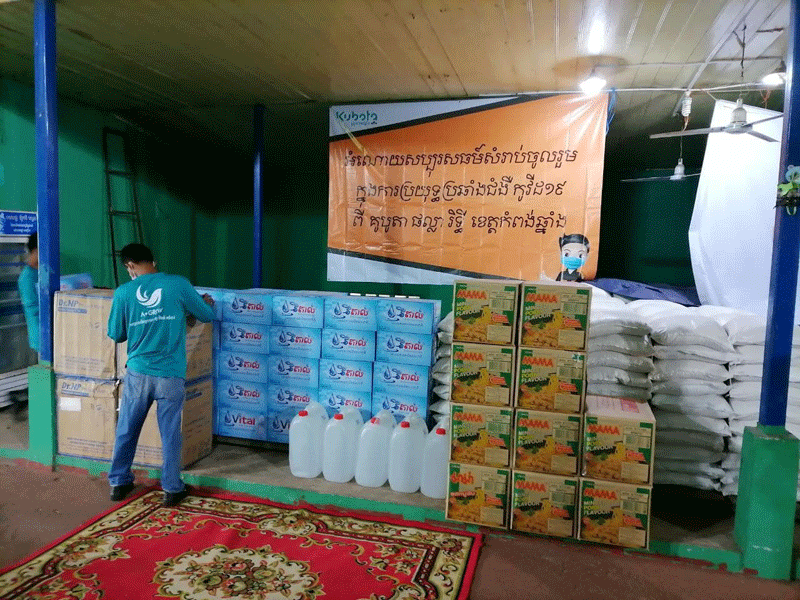 អំណោយដែល ក្រុមហ៊ុន គូបូតា ផល្លា រិទ្ធី សាខាកំពង់ឆ្នាំងជួយឧបត្ថម្ភជូនឯកឧត្តម ស៊ុន សុវណ្ណារិទ្ធិ អភិបាលខេត្តកំពង់ឆ្នាំង នៅពេលនេះរួមមាន៖អង្ករ ០៣ តោន.ទឹកសុទ្ធ Vital ១០០ កេស.មីម៉ាម៉ា ១០ កេសធំ ម៉ាស់ ២៥០ ប្រអប់.អាល់កុល ០៥ កានរួមនិងទឹកប្រាក់ ១០ លានរៀល។