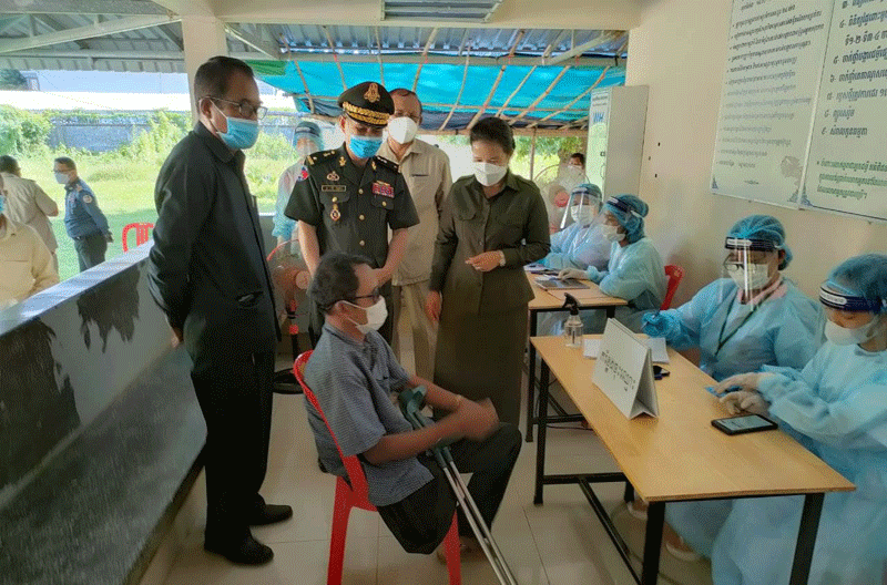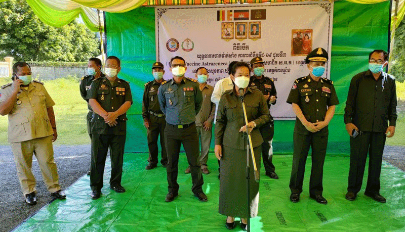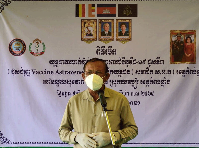 ខេត្តកំំពង់ឆ្នាំង:នៅព្រឹកថ្ងៃទី ១៧ សីហា ២០២១អភិបាលរងខេត្តកំពង់ឆ្នាំងលោកជំទាវ ប៊នសុភី តំណាងដ៏ខ្ពង់ខ្ពស់ឯកឧត្តម ស៊ុនសុវណ្ណរិទ្ធ អភិបាលនៃគណៈអភិបាលខេត្ត កំពង់ឆ្នាំងរួមនិងមេបញ្ជាការសឹករងកំពង់ឆ្នាំង ស្នងការរងនគបាលខេត្តមេបញ្ជាការរង កងរាជអាវុធហត្ថខេត្តអភិបាលស្រុករលាប្អៀរ.មន្ទីរអង្គភាពជុំវិញខេត្តបានអញ្ជើញជាអធិបតីភាពក្នុងពិធីបើកយុទ្ធនាការចាក់វ៉ាក់សាំងការពារកូវីត១៩ដែលជាដូសទី ៣ (ជាដូសជំរុញប្រភេទអាស្ត្រាហ្សេណេការ)ជូនបងប្អូនអតីតយុទ្ធជននិងកងកម្លាំងនគបាលដែលចូលនិវត្តន៍ ៊ពិធីនេះធ្វើឡើងនៅមណ្ឌលសុខភាពជ្រៃបាក់ស្រុករលាប្អៀខេត្តកំពង់ឆ្នាំង។