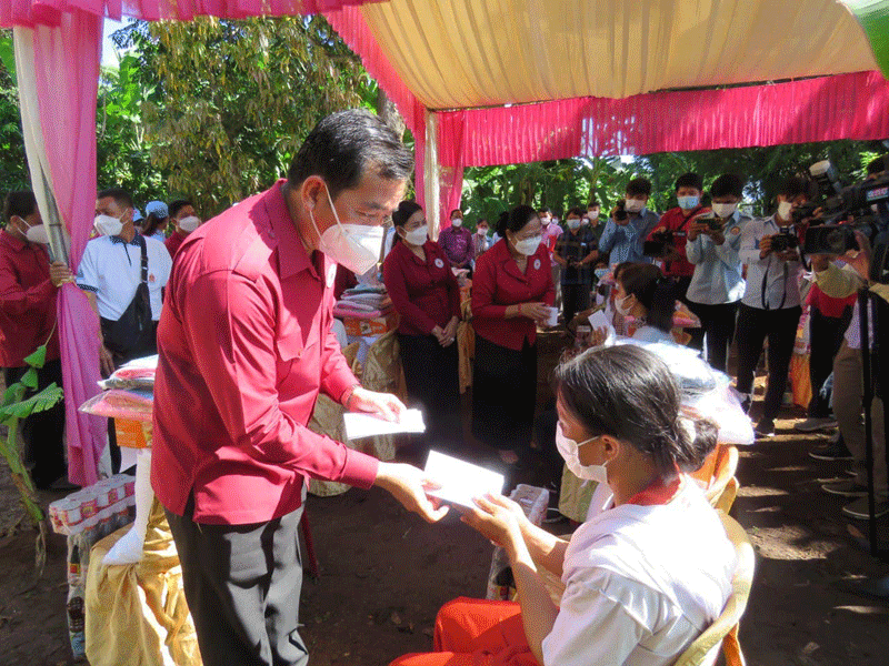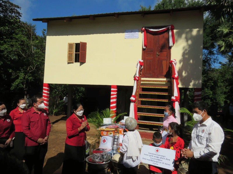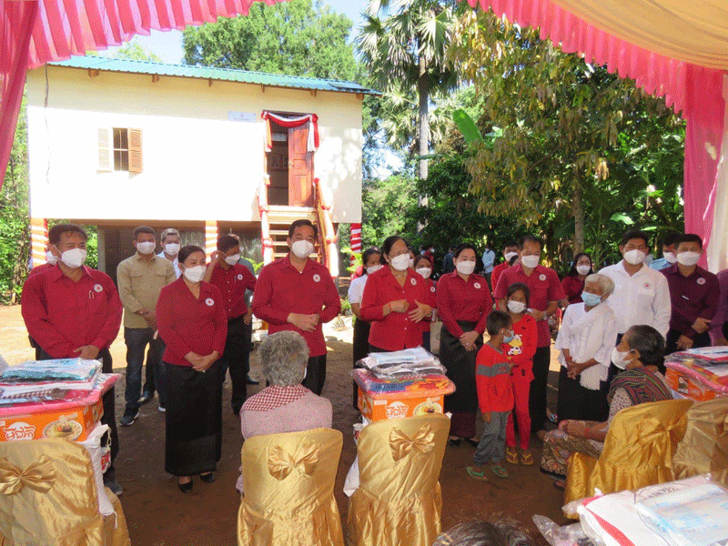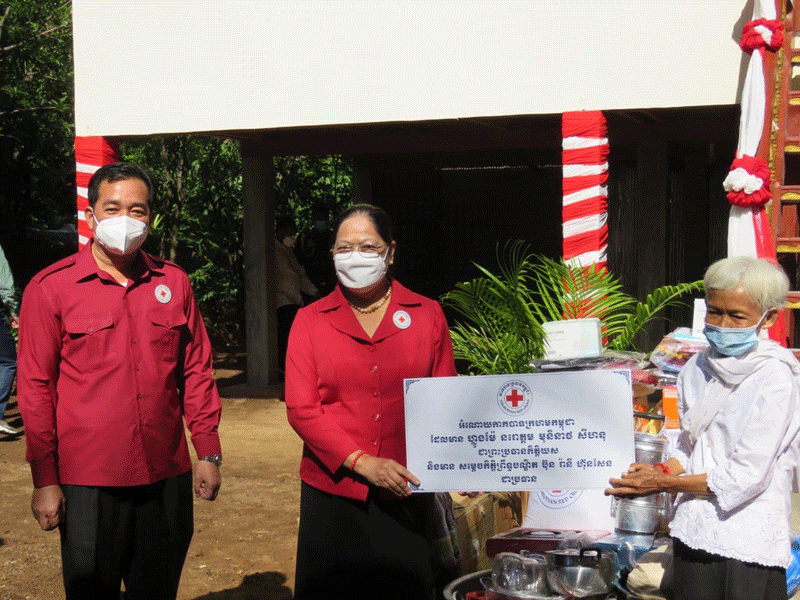 កំពង់ចាម : ផ្ទះ១ខ្នង គិតជា ថវិកា សាងសង់អស់ជាង៨ពាន់ដុល្លារ រួមនឹង សំភារ ប្រេីប្រាស់ ដែលជាអំណោយ របស់ សម្តេចកិត្តិព្រឹទ្ធបណ្ឌិត ប៊ុន រ៉ានី ហ៊ុន សែន ប្រធានកាកបាតក្រហមកម្ពុជា ត្រូវ បាន ប្រគល់ ជូន លោកយាយ ម្នាក់ ឈ្មោះ ឌឿ ម៉េត អាយុ៧៣ឆ្នាំ មុខរបរ ដេីរ បេះ បន្លែ ស្លឹកឈើ លក់ ដែលធ្លាប់ស្នាក់នៅក្នុងខ្ទមចាស់ទ្រុឌទ្រោម ជាមួយនឹងកូនស្រីមេម៉ាយម្នាក់ និងចៅប្រុសស្រី ២នាក់ ស្ថិតនៅក្នុង ភូមិរមូល ឃុំរអាង ស្រុកកំពង់សៀម ខេត្តកំពង់ចាម ពិធីនេះបានធ្វេីឡេីងនាព្រឹកថ្ងៃទី ២១ ខែសីហា ឆ្នាំ២០២១ ក្រោម វត្តមាន លោកជំទាវ ម៉ែន នារីសោភ័គ អគ្គលេខាធិការរងទី១ តំណាងសម្តេចកិត្តិព្រឹទ្ធបណ្ឌិត ប៊ុន រ៉ានី ហ៊ុនសែន ប្រធានកាកបាទក្រហមកម្ពុជា និង ឯកឧត្តម អ៊ុន ចាន់ដា ប្រធានគណៈកម្មាធិការសាខា កាកបាទក្រហម ខេត្ត ព្រមទាំង មន្ត្រី ពាក់ព័ន្ធ ជាច្រើន រូប ផង ដែរ ។