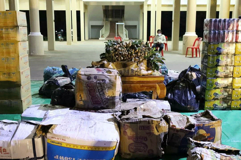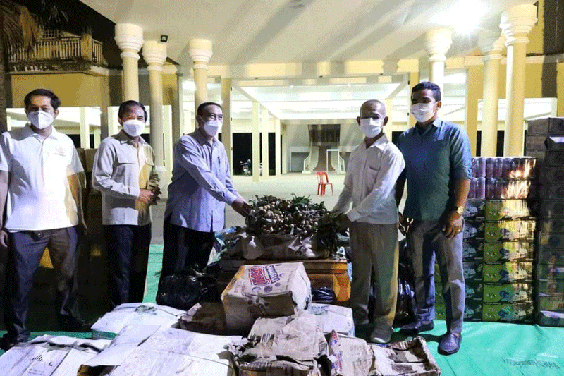 ព្រះវិហារៈ នាល្ងាចថ្ងៃសៅរ៍ ទី២១ ខែសីហា ឆ្នាំ២០២១នេះ រដ្ឋបាលខេត្តព្រះវិហារ មានរៀបចំពិធីប្រគល់-ទទួលផ្លែតាង៉ែន និងគ្រឿងឧបភោគ បរិភោគមួយចំនួនទៀត ទៅដល់មន្ទីរសុខាភិបាលខេត្ត កងកំលាំងទាំងបី និងកុមារកំព្រា ក្រោមអធិបតីភាព ឯកឧត្តម យ៉ុង គឹមហ៊ាន អភិបាលរងខេត្ត តំណាងឯកឧត្តម ប្រាក់ សុវណ្ណ អភិបាលខេត្ត ដែលពិធីនេះ ធ្វើឡើងក្នុងបរិវេណសាលាខេត្តព្រះវិហារ ។