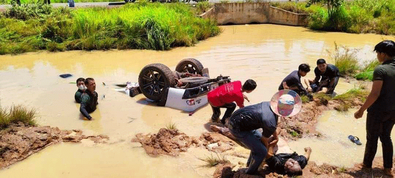 បន្ទាយមានជ័យៈមានករណីគ្រោះថ្នាក់ចរាចរណ៍មួយបានកើតឡើង ដោយរថយន្ត ទំនើបមួយគ្រឿង ក្រឡាប់ចូលក្នុងទឹកបណ្ដាលឱ្យអ្នកនៅក្នុងរថយន្តបានបាត់បង់ជីវិតចំនួន ៤នាក់ក្នុងខណៈនេះសមត្ថកិច្ចកំពុងធ្វើការស្រាវជ្រាវរកអត្តសញ្ញាណរបស់ក្រុមគ្រួសារសព ករណីគ្រោះថ្នាក់ចរាចរណ៍ខាងលើនេះបានកើតឡើង នៅវេលាម៉ោង១៣.៤០នាទី ថ្ងៃទី២២ ខែសីហាឆ្នាំ២០២១ នៅស្រុកស្វាយចេក ខេត្តបន្ទាយមានជ័យ គឺបង្ករដោយខ្លួនឯងនៅ ចំណុចបង្កោលគីឡូម៉ែត្រលេខ២៥.លើផ្លូវជាតិលេខ៥៨ កន្លែងផ្លូវកែងខ្លាំង ស្ថិតនៅក្នុងភូមិតេជោភ្នំឆ័ត្រ ឃុំស្វាយចេក ស្រុកស្វាយចេក ខេត្តបន្ទាយមានជ័យ។ រថយន្ត១គ្រឿងម៉ាកMAZDA PICH UPពណ៍ ស ពាក់ស្លាកលេខ MR SELLA បើកបរដោយឈ្មោះ គិម ហេង ភេទប្រុស អាយុ៥៥ឆ្នាំរស់នៅ ភូមិយាងថ្មី ឃុំនិមិត្ត ស្រុកអូរជ្រៅ ខេត្តបន្ទាយមានជ័យ អ្នករួមដំណើរ៣នាក់