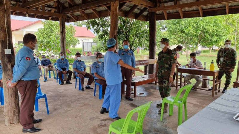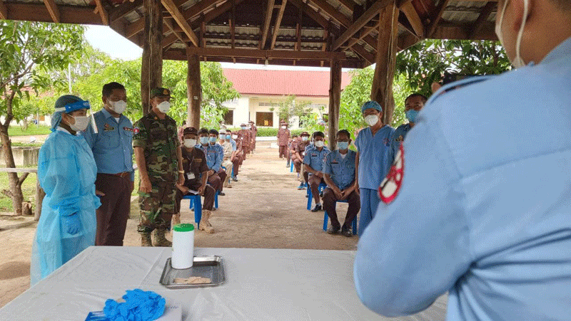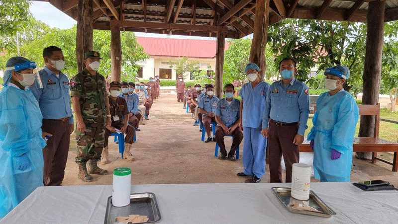 ព្រះវិហារៈនៅព្រឹកថ្ងៃ ទី២៥ ខែសីហា ឆ្នាំ២០២១នេះ កម្លាំងកំចាត់ម៉ីនទី៦ទឹសប្រាសាទ ព្រះវិហារចំនួន៧៣នាក់ទទួលការចាក់វ៉ាក់សាំង ការពារជម្ដឺកូវិដ១៩ប្រភេទ អាស្ត្រាហ្សេនីការ (Astrazenica)ដូសជម្រុញ ដូសទី៣នៅមន្ទីពេទ្យ ក្រសួងការពារជាតិ សម្ដេច តេជោ ហ៊ុន សែន ស្រអែម។